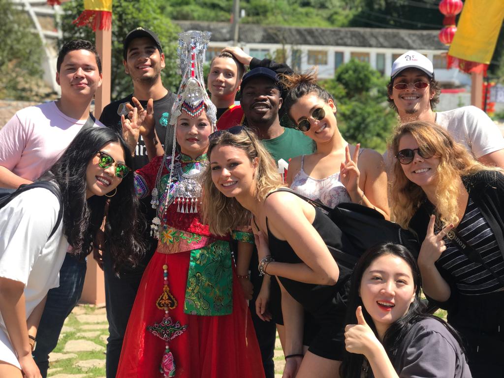 约60名语言生,在副院长包含丽、副教授阚文文、教师柏帆的带领下,来到位于温州市平阳县的新联村,进行了为期一天的茶文化教学实践。活动得到了新联村领导的大力支持,同时温州诗词楹联学会约28位书法专家也参与到了活动中来。