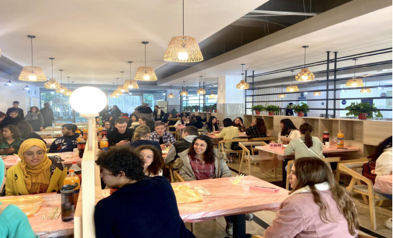 在餐厅,大家围坐一团,在食堂工作人员的指导帮助下,学习包饺子的技巧,食堂师傅的熟练操作让学生不禁发出赞叹。不一会,桌面上摆满了形状各异的饺子,方的、长的、圆的、扁的……欢声笑语就在这一揉一捏中慢慢发酵起来。