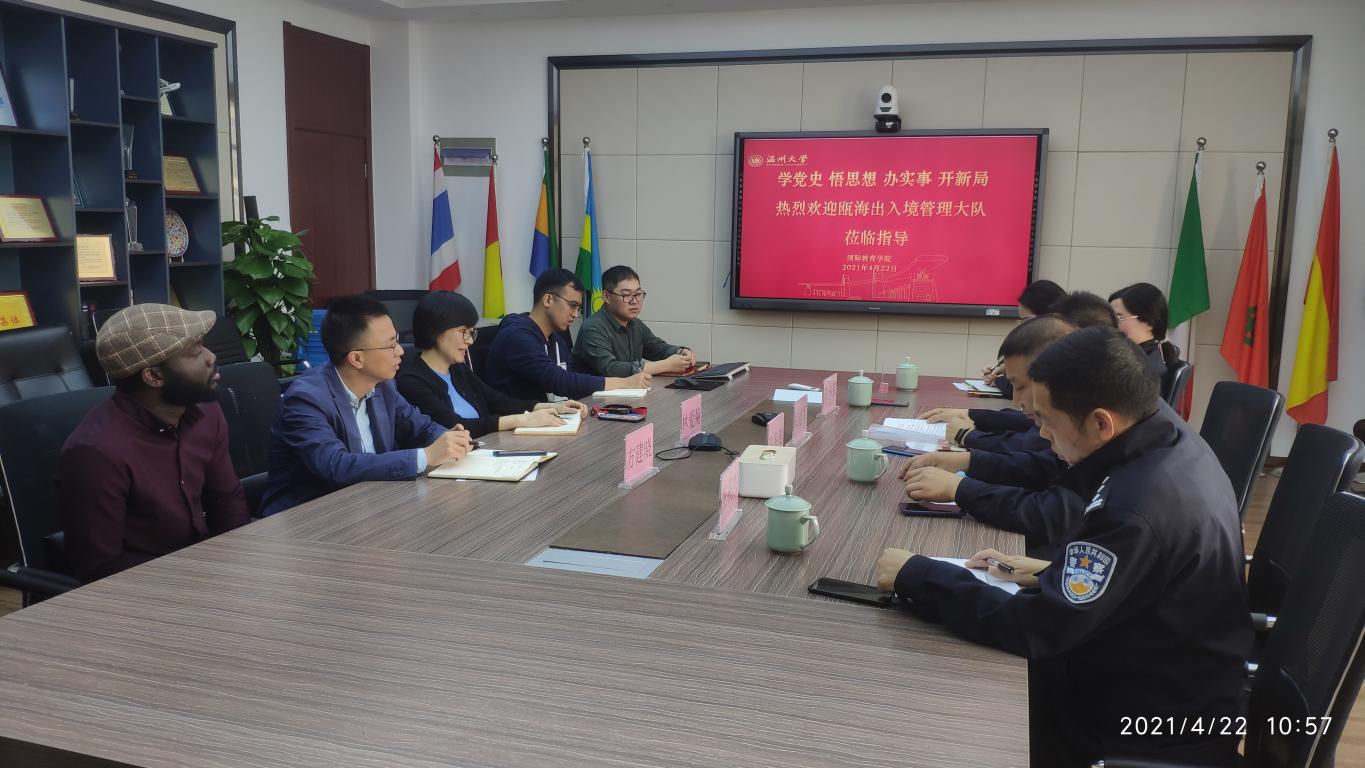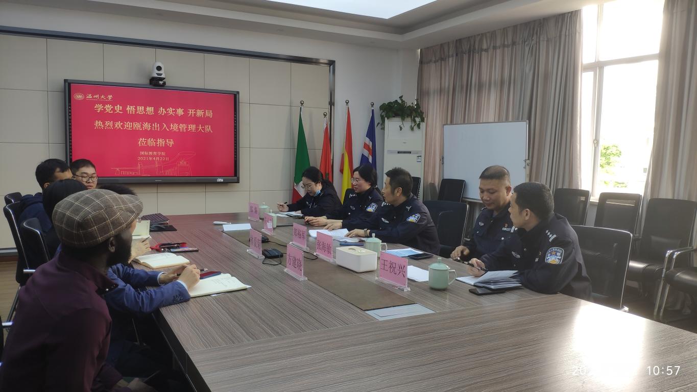 4月23日上午,瓯海区公安局副局长郑裕军、瓯海区出入境管理大队大队长张海敏、王祝兴、陈小菲、郑剔警官一行来海角视频