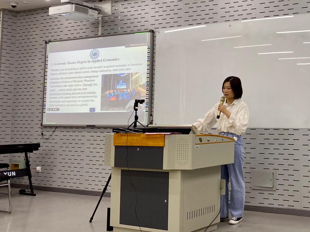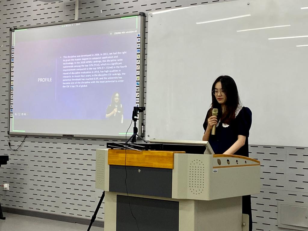 我校目前已开设英语授课硕士专业的学院有七个,此次说明会为意向申请人安排了其中三个学院的专业介绍,这些专业为本年度新增专业或历年热门专业。 商学院王露老师、电气与电子工程学院张正江老师、计算机与人工智能学院胡杰和许铮铮老师等老师应邀参会并现场详细介绍了悉心准备的项目信息。 参会人员们仔细聆听了老师们的介绍,对各自意向申报的硕士专业有了更直观的认识。
