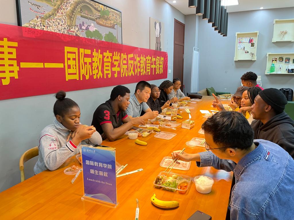 在交谈中,孙安梭处长向国际学生骨干强调了校园安全重点事项,希望他们随后在广大留学生群中积极宣传。特别是最近诈骗案件高发,他提醒国际学生要提高自身的防范意识,不要轻易相信陌生人,要从正规渠道购买物品,不贪图小便宜,不要透露自己的个人信息给陌生人。此外,孙处长还提到了交通法规、消防安全和禁毒教育等。