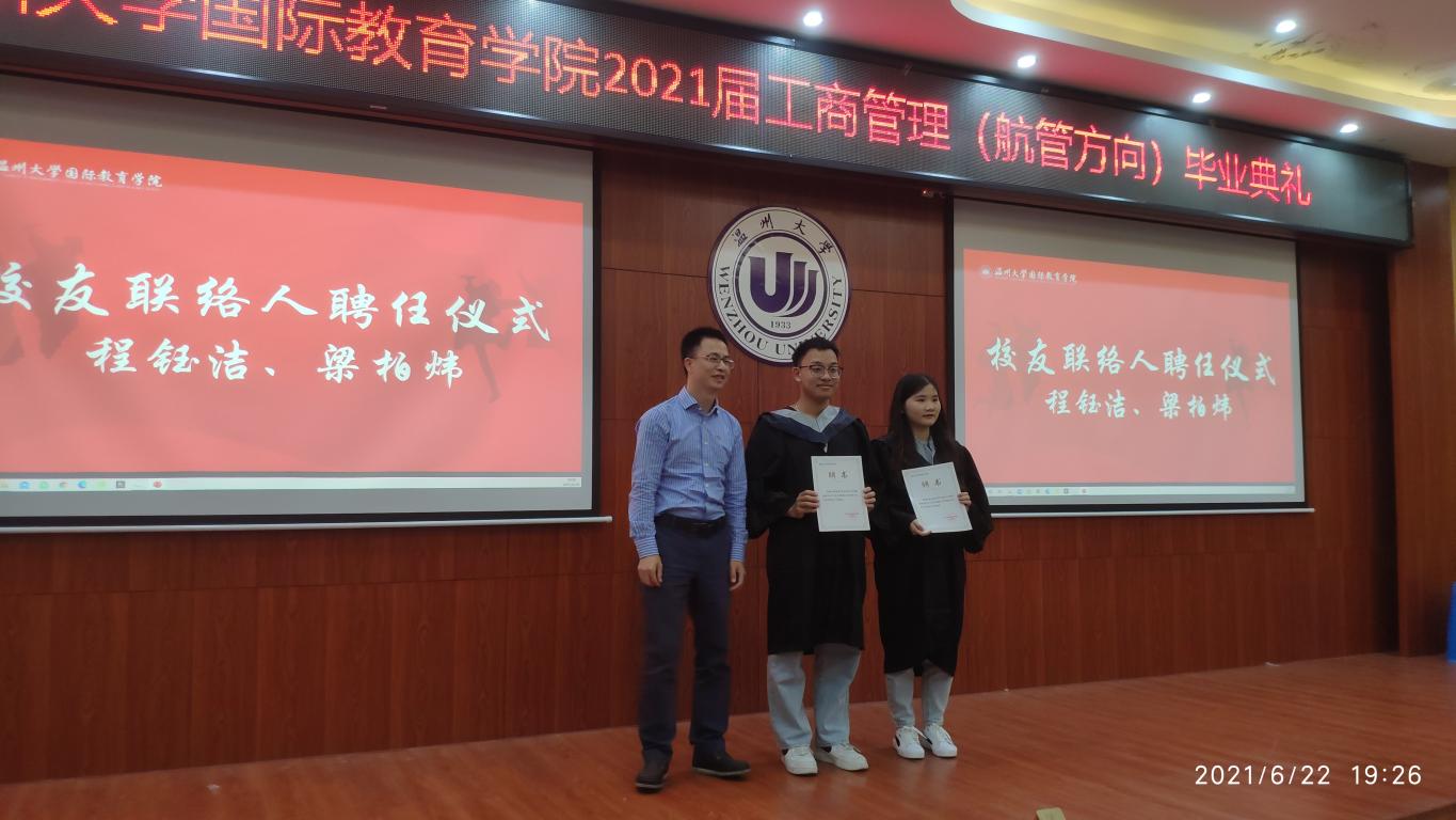 在校友联络员聘任仪式上,方建晓副书记希望梁柏炜、程钰洁两位校友联络员不忘初心,不负重托,积极关注和推动母校的建设与发展,担当起校友与学院沟通的桥梁作用。