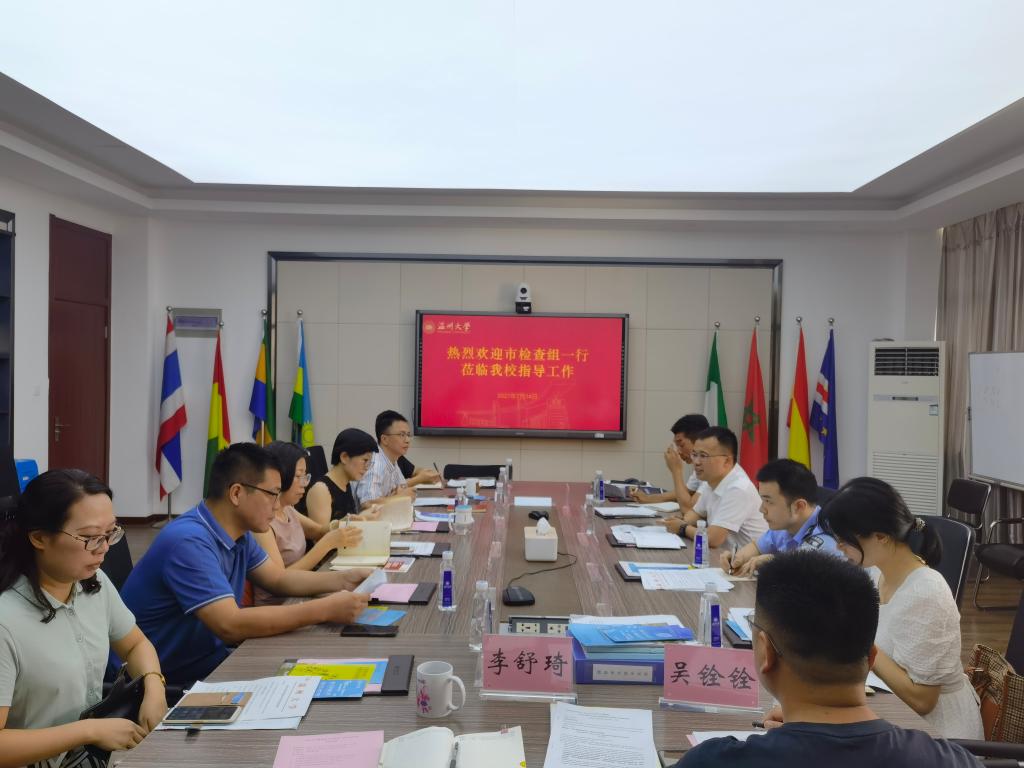 为贯彻落实《浙江省教育厅办公室关于开展留学生暑期工作专项检查的通知》精神,落实我校留学生管理制度和相关要求。7月14日上午,由温州市教育局高等教育处侯伯念副处长、对外合作与交流处张仁杰、市公安局出入境管理局欧阳超警官、瓯海区公安分局出入境管理大队陈小菲警官组成的检查组一行来我校开展暑期工作专项检查。海角视频