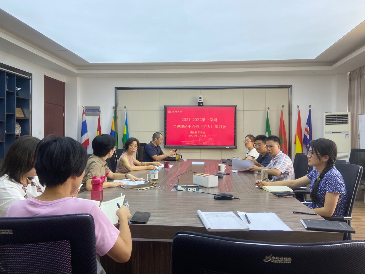 在北校区国际楼311会议室召开二级理论中心组学习会议,学院班子成员、党总支委员、党务秘书、教研室主任、科长参加了会议,党总支书记林爱菊主持。