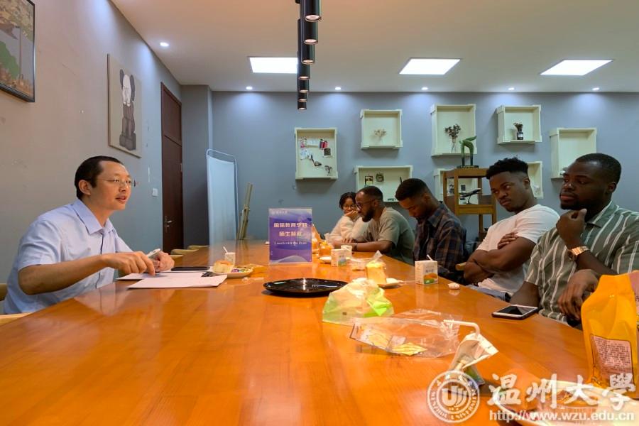 熊院长与学生共进午餐,详细询问了学生的学习和生活情况。他表示国际学生应当加强汉语的学习,提升汉语能力,并努力通过学校的学习平台和活动机会了解中国,走进温州,成为中外交流的大使。在交谈中,学生们敞开心扉,畅谈自己的学习计划、人生理想和遇到的一些困惑。来自博茨瓦纳的学生RAGONTSE ANGEL ATANG提到境外的学生上网课存在一些困难,非常担心会拿不到足够学分影响毕业。来自马拉维的学生CHISALA HERBERT表示自己今年学习成绩相比去年有所进步,希望有机会冲刺更高级别的奖学金。熊勇院长在认真听取了国际学生的意见后,与同学们进行了探讨,并表示将问题和意见反馈给相关部门和学院。