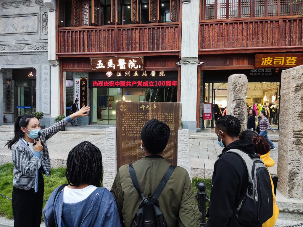 多名留学生,来到了温州市五马街区开展以“知行温州”为主题的研学活动。