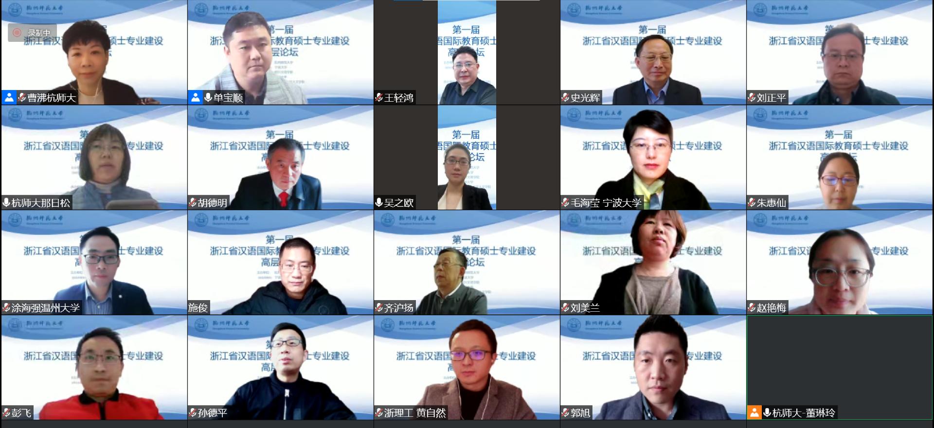 主办,杭州师范大学人文学院承办,在腾讯会议上举行了第一届浙江省汉语国际教育硕士专业建设高层论坛。大会围绕汉语国际教育硕士培养方案出现的问题与困惑进行了深入的交流,就相关问题达成共识,受益良多。