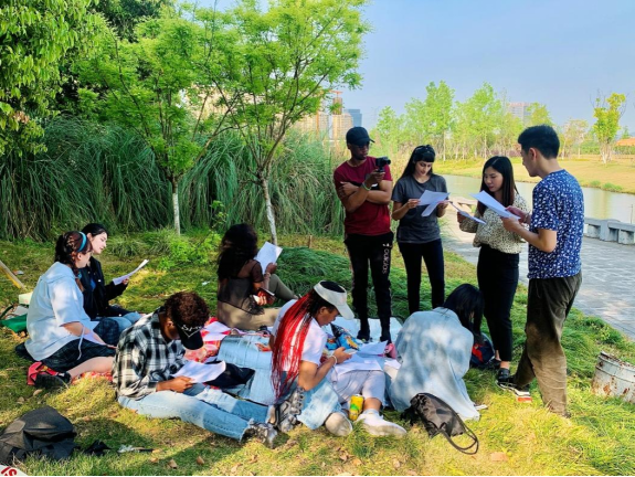 师生赴“浙南威尼斯”—温州三垟湿地,以草坪野餐的形式,举行了一场别开生面的春日诗会活动。此次活动共有11位留学生和3位老师参与。
