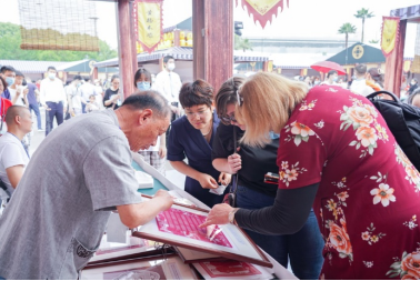 品牌项目“文通中华·感知中国”中国语言与文化公益班的一次线下体验活动。公益班外籍学员对非遗传承人现场展示非遗作品和技艺,生动讲述非遗传承故事赞不绝口,形式各样的传统作品、精湛多彩的非遗技艺、生动感人的非遗故事更让外籍人士流连忘返。文化因交流而多彩,因互鉴而丰富。来自日本的爱理博士表示:“一下子见到这么多非遗项目,认识这么多能工巧匠,他们的作品太棒了!我们今天真的是大开眼界了,累并快乐着!”