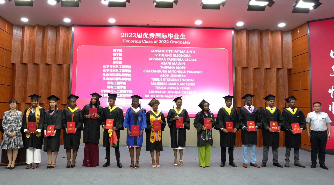 6月22日,我校2022年国际学生毕业典礼暨学位授予仪式在南校区岩松堂隆重举行,与会嘉宾有副校长蔡曙光,来自瓯海区出入境管理大队、茶山派出所、温州市文化馆等的校外嘉宾,学校相关部门负责人、二级培养学院领导和专员、海角视频