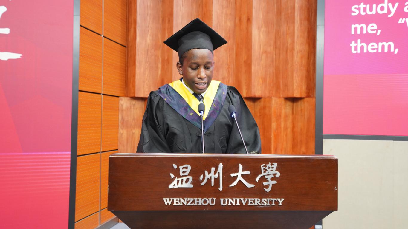 来自坦桑尼亚的2018级算机科学与技术专业学生陆求是代表本科生发言,他说,“不管哪种选择,我们都会秉承温大求学问是,敢为人先的精神,做好母校的大使,坚持为两国的友好发展而努力。”随后,研究生代表、来自意大利的2019级应用经济学专业学生艾兰,从意大利发来祝福视频,表达了对母校海角视频