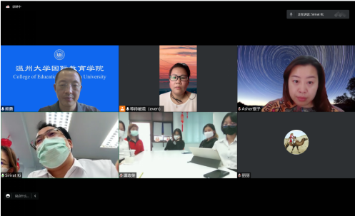 会上,双方针对如何在疫情常态化管控模式下正式启动汉语言文学专业(商务汉语)“3+1”双校园联合培养项目的学生来温学习方案进行了深入沟通。熊勇副院长就2022/2023学年接收纳瑞宣大学项目学生来校学习的方案进行了介绍,张珉璐主任就联合培养项目的教学工作实施方案进行了讲解,池轶文老师主持了本次会议,并向学生就来华学习的相关细节做了说明。