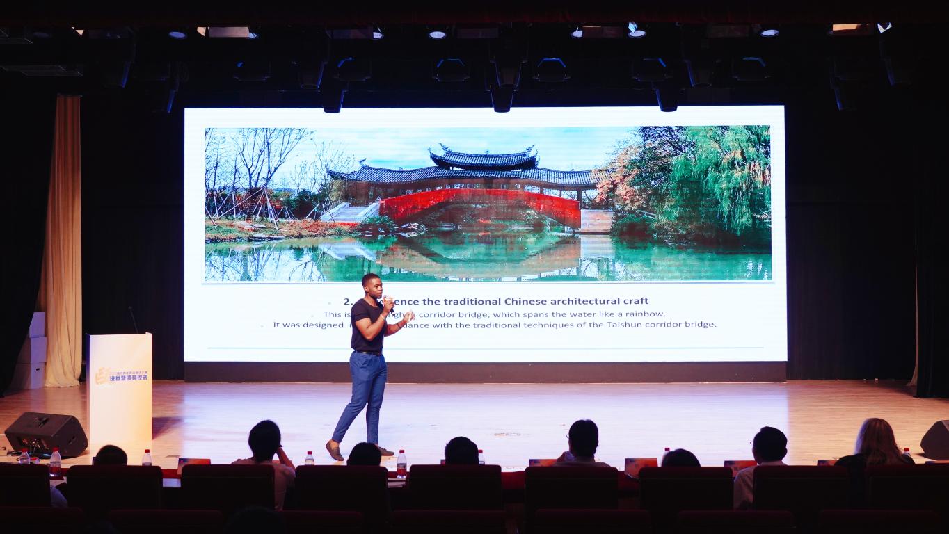 商务汉语专业学生陈梦瑶(CHEN CATARINA)和来自津巴布韦的2022级机械工程专业硕士睿君(MAJONI ISHEMUNYORO RAYMOND)分别以《温州欧式建筑》和《三垟湿地》为演讲内容,发挥优秀,最终获得比赛优胜奖,海角视频