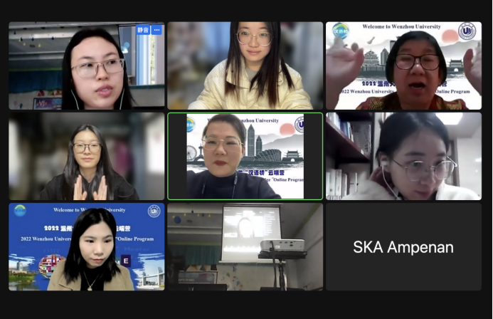 向来自印尼参加线上研修项目的全体同学表示欢迎,表示这次的云端营课程包括直播课和录播课(成语故事、绘本故事、温州美食),相信会给同学们带来很好的文化体验。