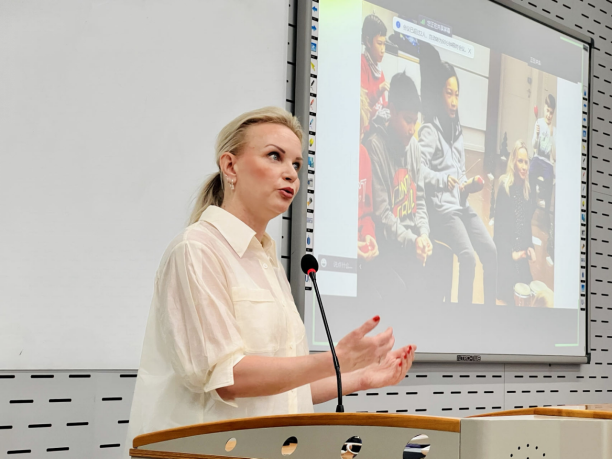 来自芬兰拉赫第市教育局的教育局长、芬兰知名校长和教育专家Marju博士随后也发表了精彩的演讲。她着重介绍了芬兰的现象教学方法如何运用到语言教学,强调了跨学科教学的重要性,通过结合不同学科的知识,帮助学生理解更广阔的概念。此外,提到在没有中国文化专家的情况下,与中国学校建立伙伴关系成为解决问题的方法,促进芬兰和中国学生之间的相互学习和文化交流。同时展示了中芬学生交流项目的丰富成果,加强了两国友好学校的交流合作。