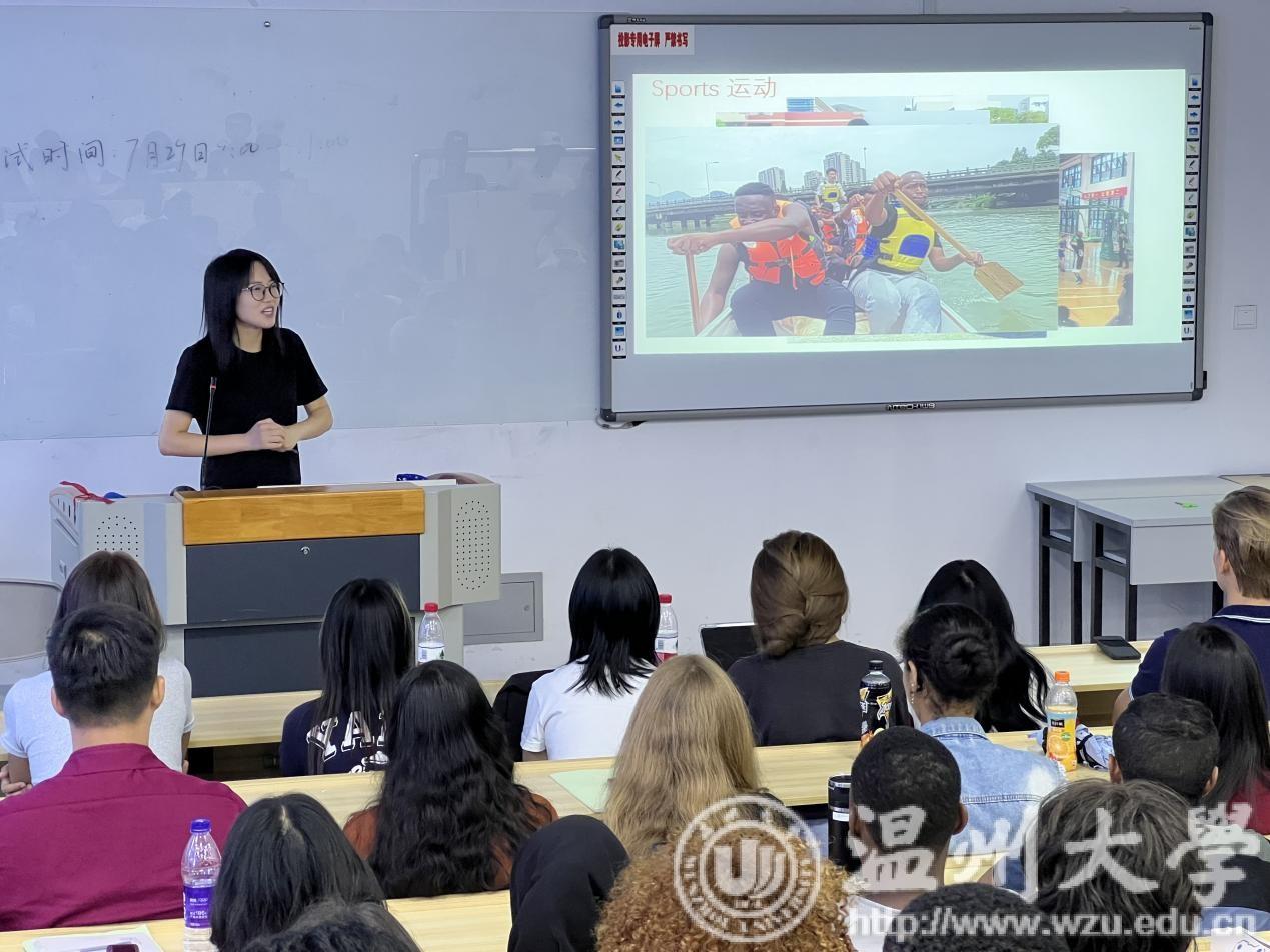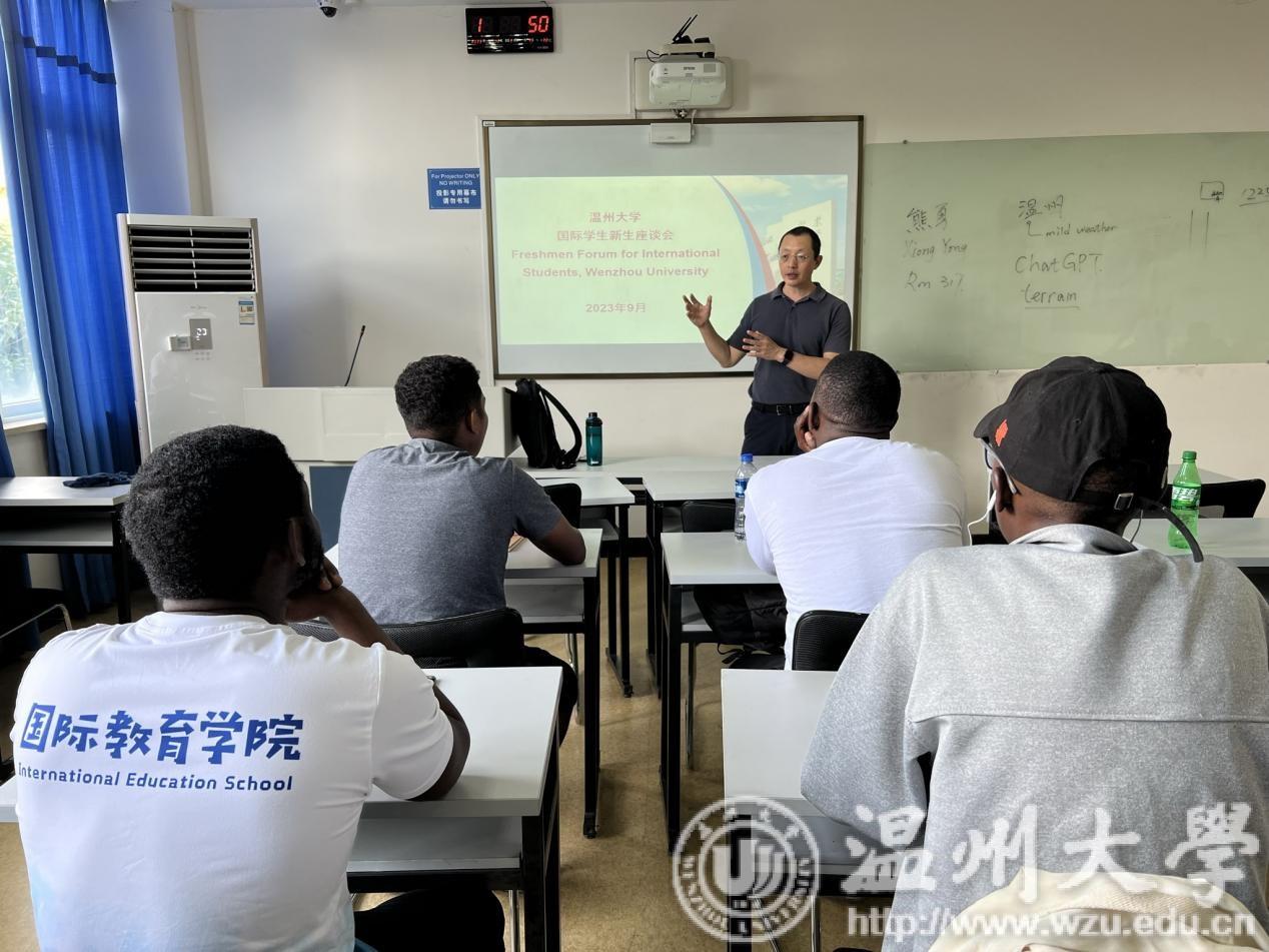3-202教室顺利举行。宋院长首先代表学院欢迎五洲四海的留学生们来到温州这片热土上;其次,宋院长分别从自然环境、特色美食、学习环境等方面介绍温大底蕴,并邀请陈梦瑶、雅库布等老生代表及夏花等新生代表分享学习体验,为新生进一步明确目标与理想起到了示范作用;最后,宋院长寄语留学生们“要像蒲公英一样,不断充盈自我,然后飞往世界各地,讲好中国故事,传播正能量,为推动构建人类命运共同体贡献青春力量”。