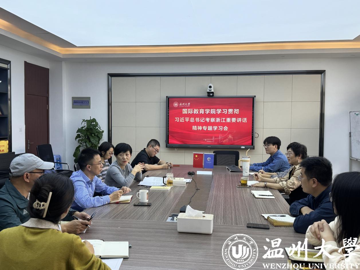 学院党总支书记林爱菊指出,在“八八战略”实施二十周年的重要节点,习近平总书记再次亲临浙江,先后到义乌国际商贸城、诸暨市枫桥镇、绍兴等地视察调研,发表重要讲话、作出重要指示,这不仅是对浙江工作的特别肯定,更是对浙江未来工作的方向指引。她希望全体党员要牢记习近平总书记的谆谆嘱托,学深悟透习近平总书记重要讲话的精髓要义,锚定学院来华留学教育质量认证及国际中文教育博士点创建两大主线目标,牢牢把握发展这一主旋律。