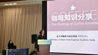 的优秀意大利籍校友代表、意大利咖啡学院资深培训师Viviana(薇薇安娜)为在场的嘉宾带来了一场精彩的咖啡文化分享,生动地介绍了世界咖啡的历史、文化,深入解读了不同国家的咖啡文化,并展示了多种萃取咖啡的工具。现场嘉宾们积极参与互动,向Viviana提问关于咖啡的做法、品种等问题,共同分享了自己国家的咖啡文化。