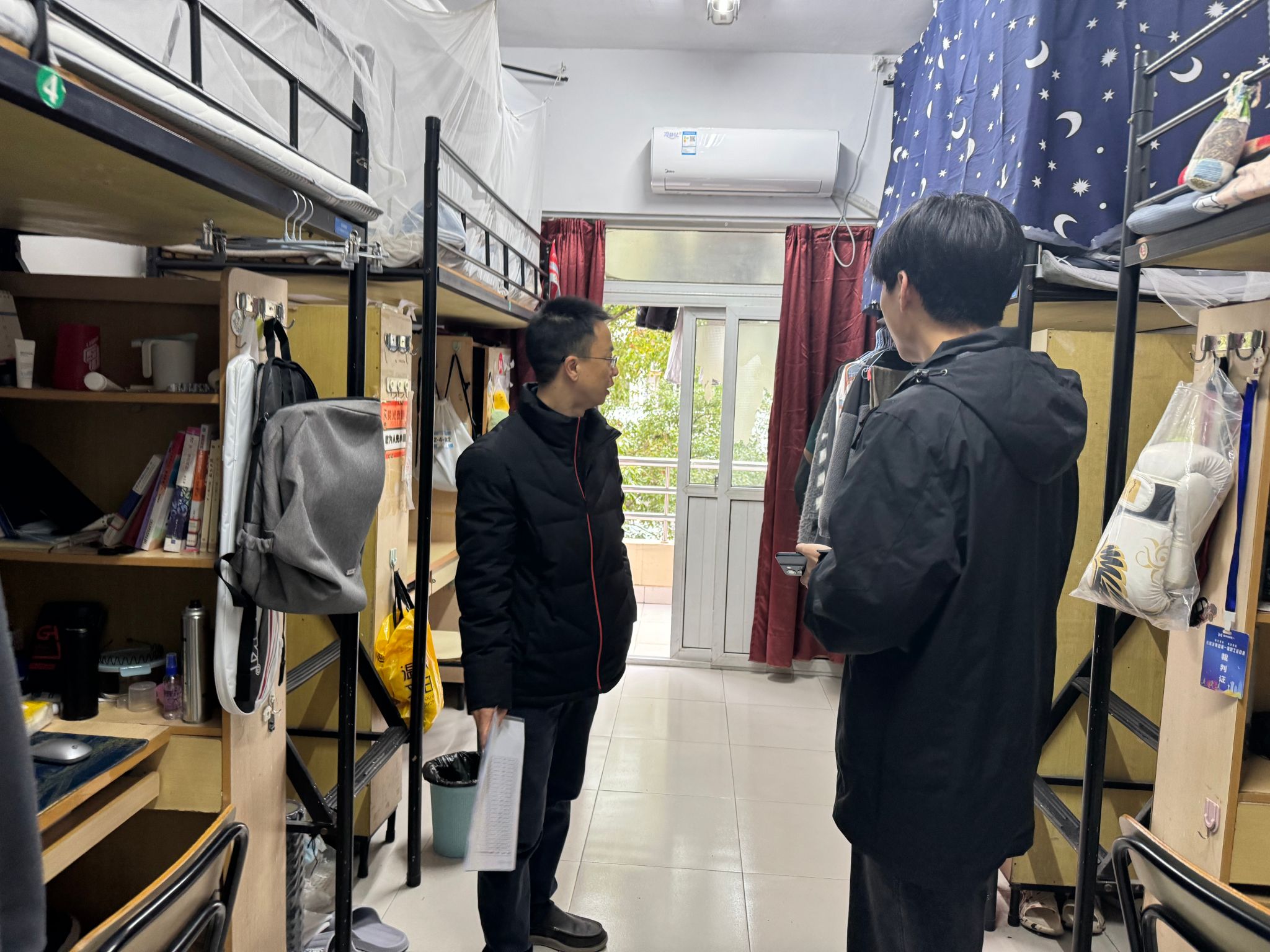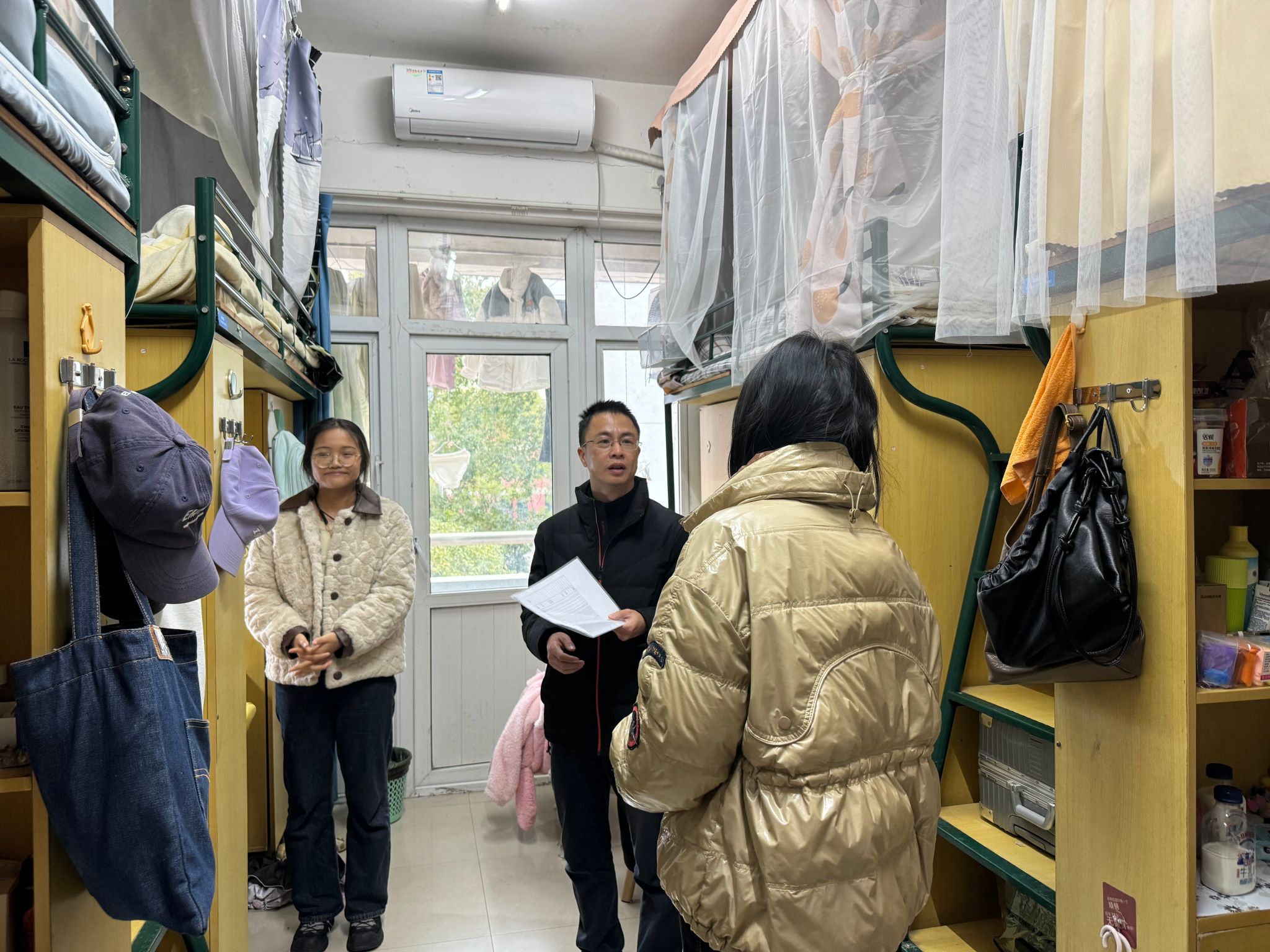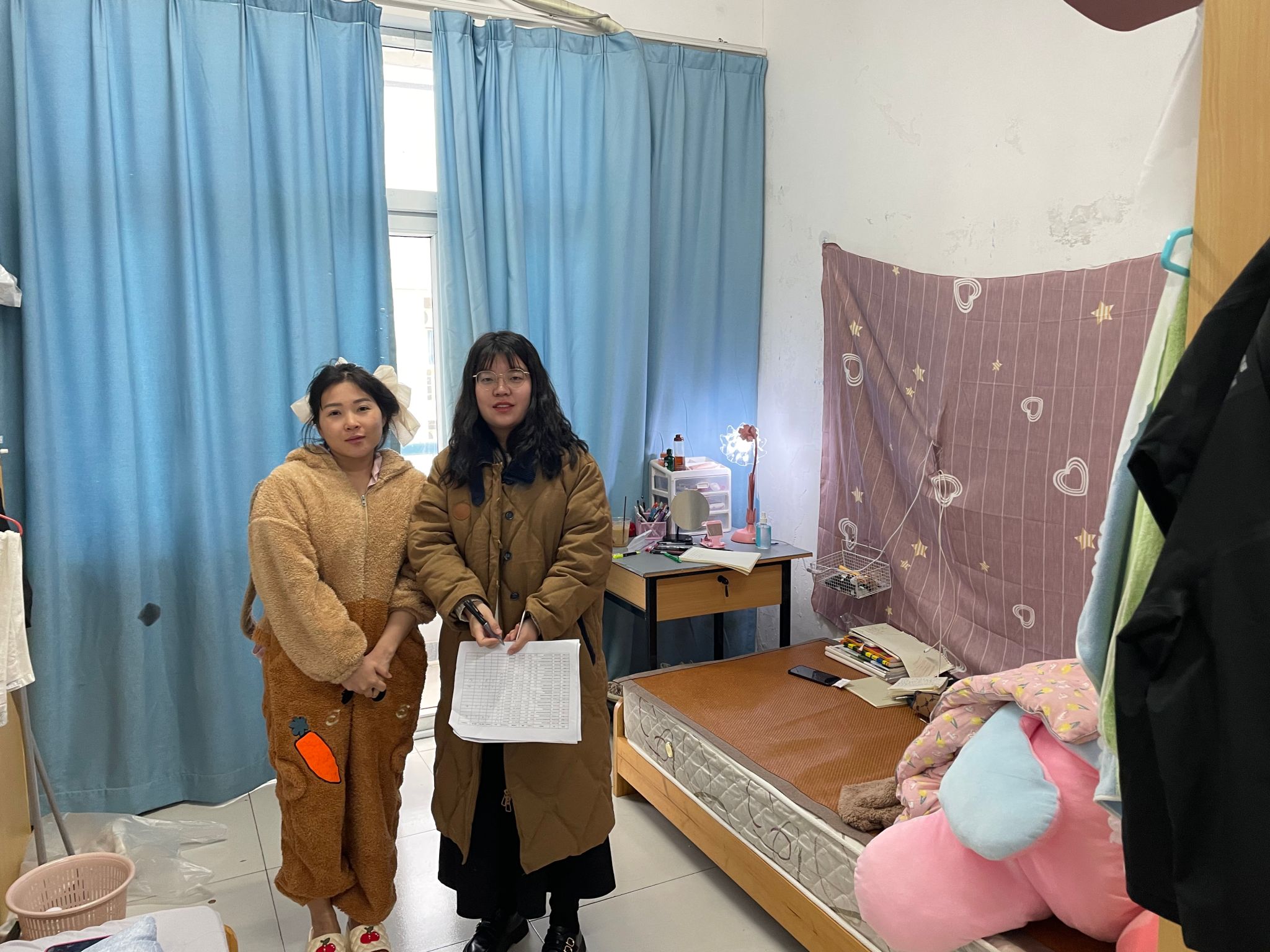 全体国内学生及留学生公寓内的安全和卫生问题进行全面检查和整改。在检查过程中,学院领导老师们对学生公寓内的消防设施、电器设备、门窗等进行了细致的检查,还对公寓内的卫生状况进行了评估,包括宿舍卫生、公共区域卫生等方面,并提出了针对性整改意见。同时,在走访过程中再次向同学们强调了公寓安全和卫生的重要性,提高同学们的安全意识和环保意识,学生们也积极响应,主动参与到行动中来,共同营造良好的住宿环境。
