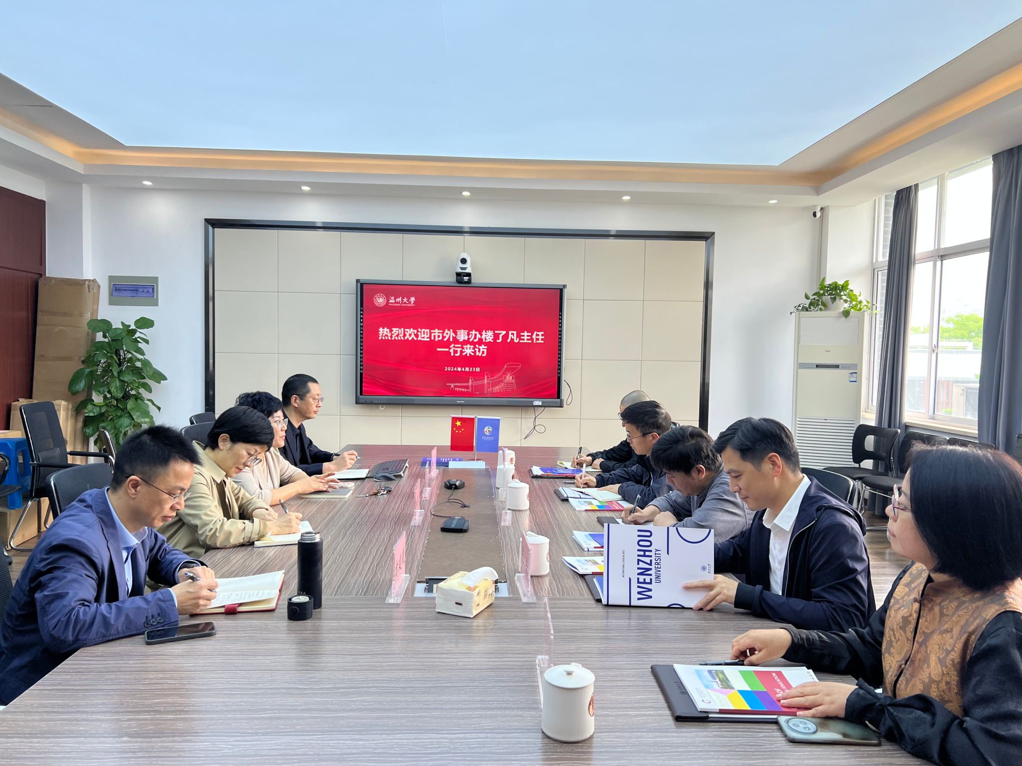 4月23日上午,温州市外办副主任楼了凡一行访问海角视频