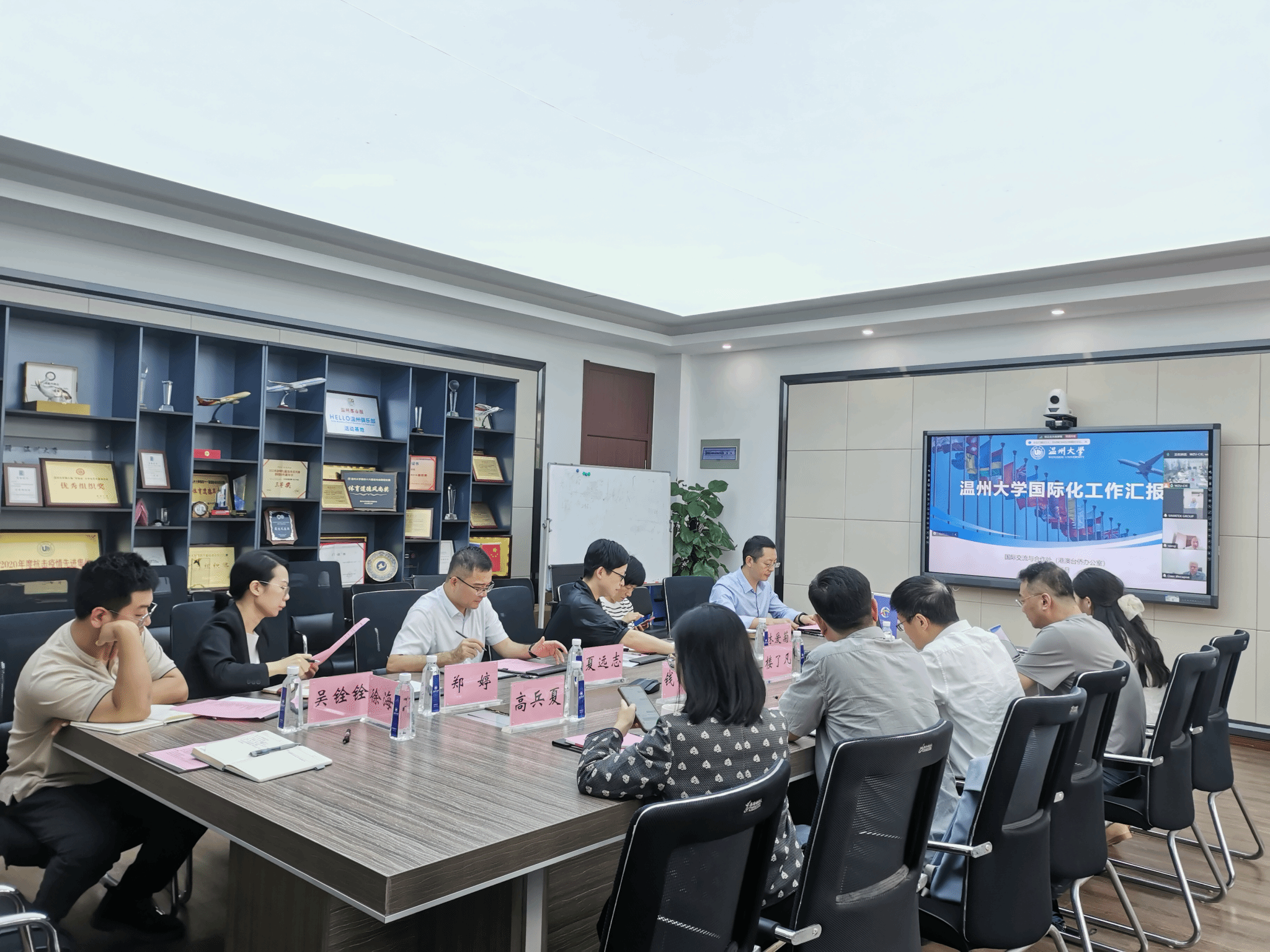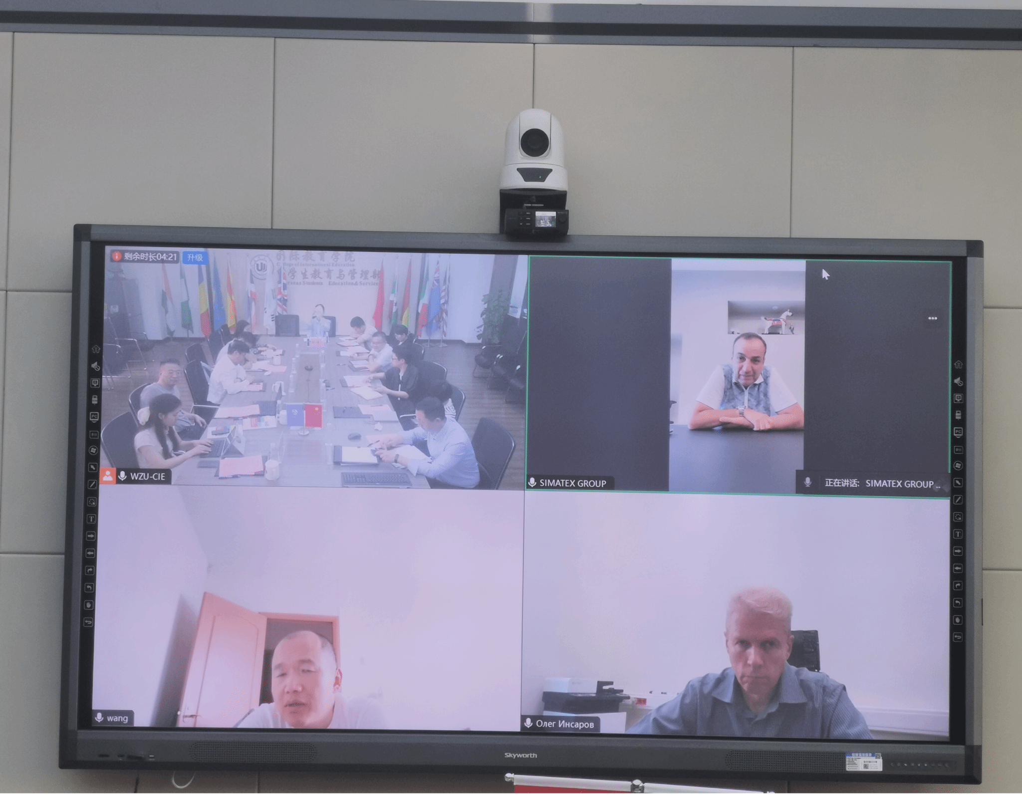 与俄罗斯联邦教育数字化转型研究所通过视频会议形式,成功召开中俄教育交流合作洽谈会。俄罗斯联邦教育数字化转型研究所第一副主任因萨罗夫·奥列格·亚历山德罗维奇、温州市人民政府外事办公室副主任楼了凡、俄罗斯奥姆洛克有限公司董事长王建刚、温州探索者教育科技有限公司总经理钱礽伟、海角视频