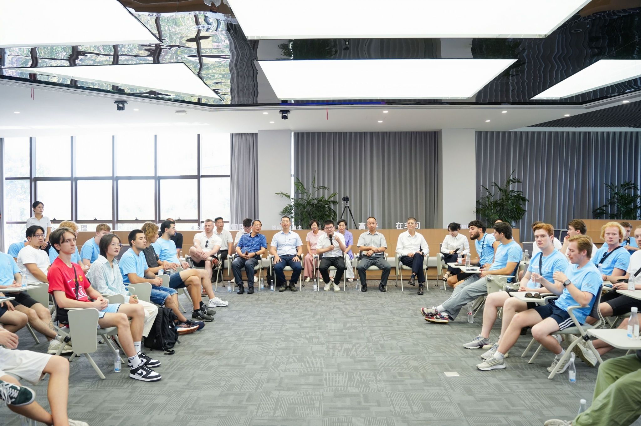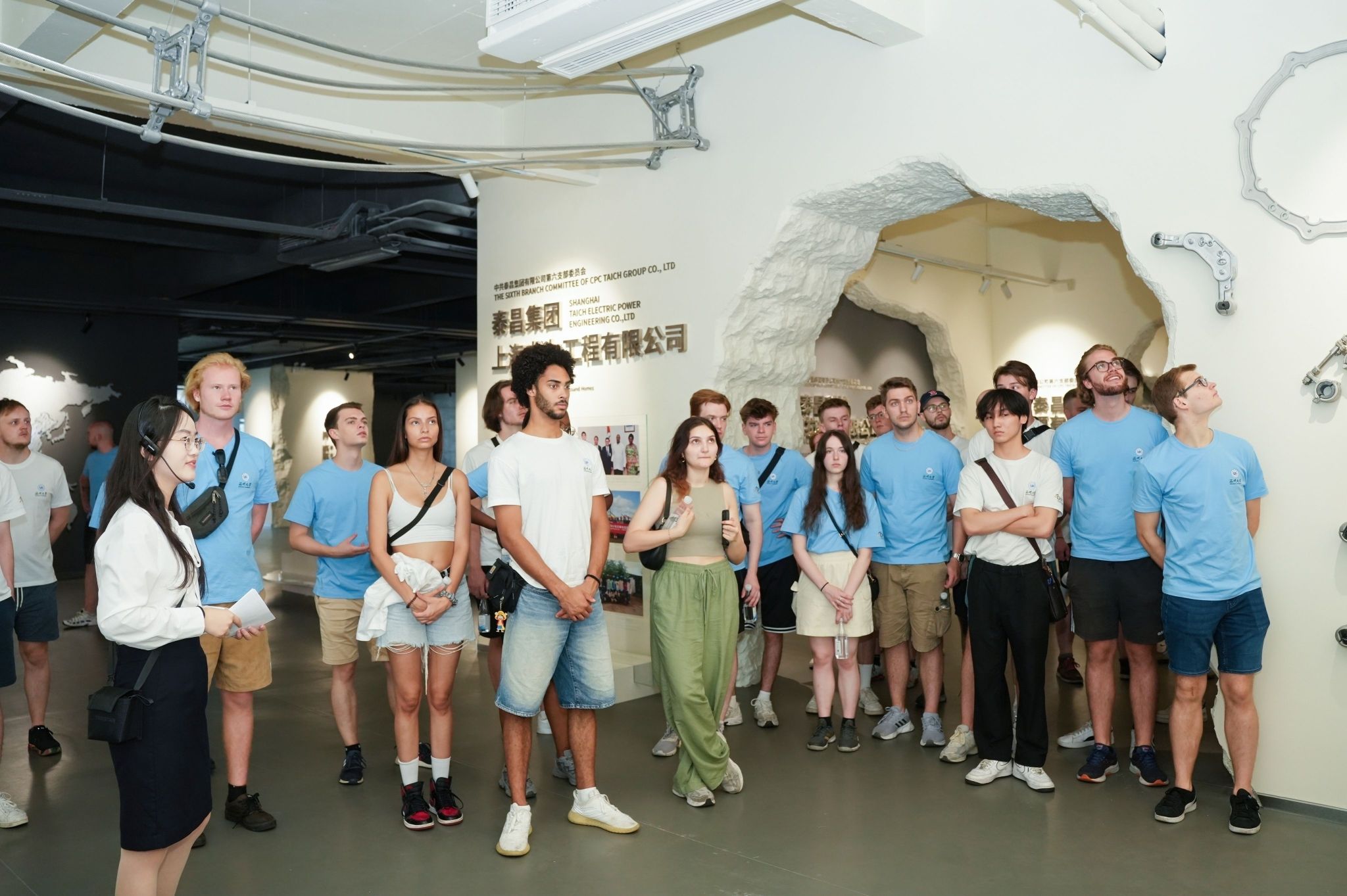 行程首站是泰昌集团,这家立足输变电产业的公司,向学生们展示了创业精神和科技实力。学生们参观了行知馆、泰行书斋等场所,了解泰昌集团的创业和发展故事。在温州市焊接高技能人才公共实训基地,学生们通过VR虛拟焊接教育培训平台沉浸式学习和体验焊接技术。随后,学生们参与了中外青年交流座谈会。会上,董事长张鹏飞做了“行之泰”的主旨演讲,分享了他的经营理念和对企业愿景的理解。在场学生纷纷提问,对企业产品、目标市场、市场份额、创业经验、企业家精神等方面展开探讨。此外,双方在愉快的氛围中分享了各自国家的文化和发展经验。