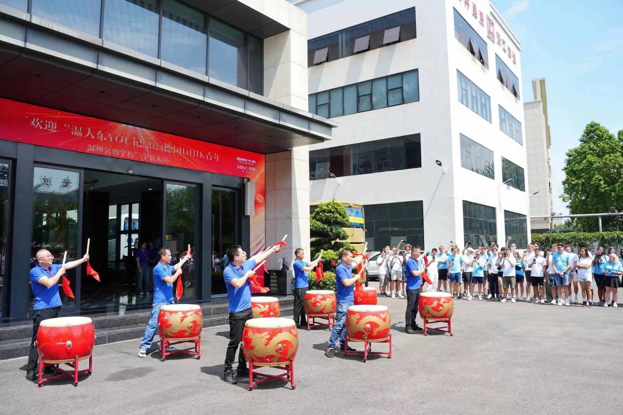 在员工热情的欢迎鼓点中,学生们来到了今天的第二站:光明集团。该集团是一家集科研、设计、制造、服务为一体的综合性企业。企业代表带领学生们参观了数码车间、精益车间和光明大学堂,展示了其先进的印刷设备和制造技术,以及在技术创新和市场竞争力方面的成就。期间,学生向企业员工积极提问,对温州企业的运营模式和海角视频有了更深入的了解。