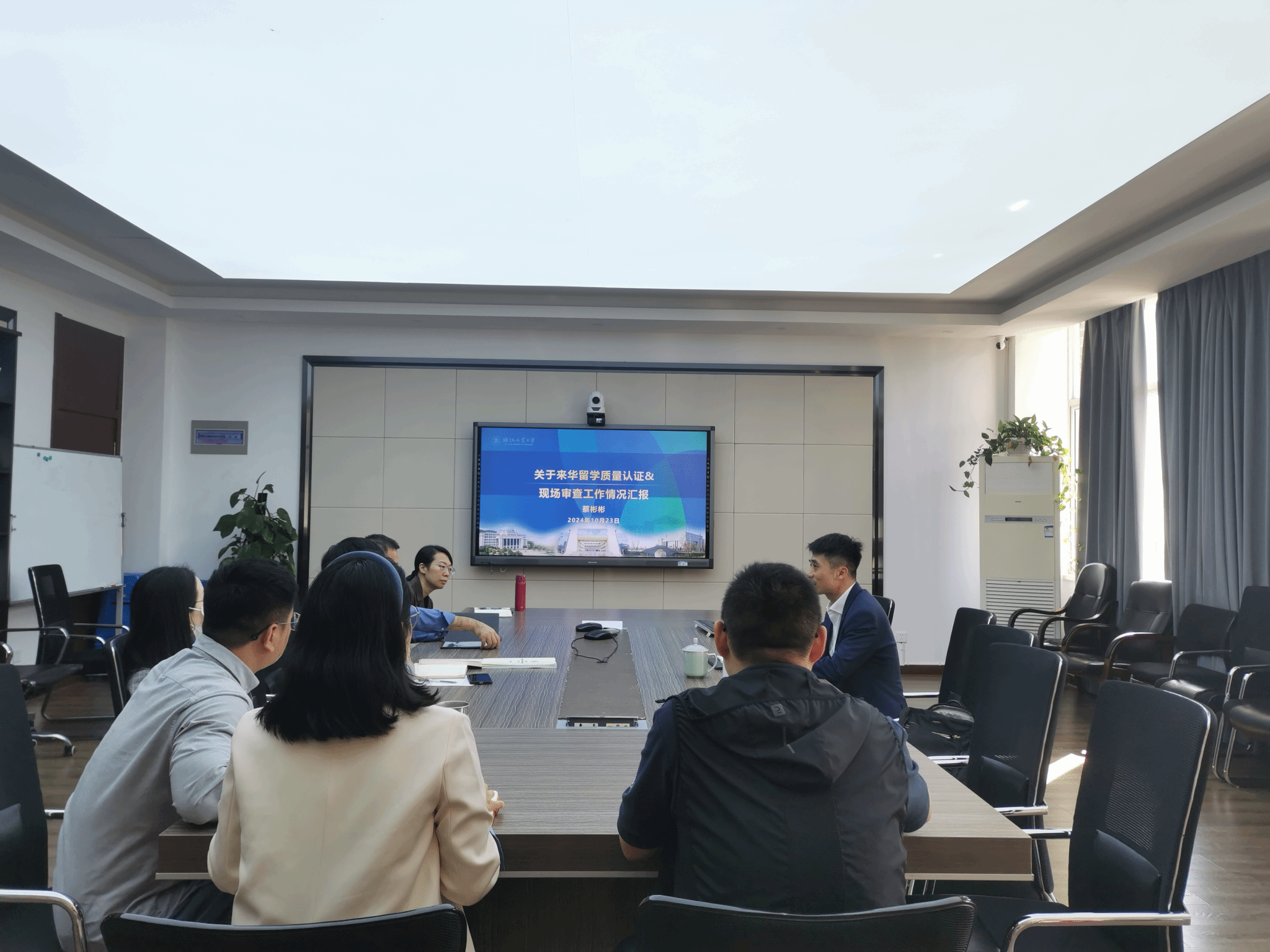 邀请浙江工业大学国际交流与合作处副处长蔡彬彬来校指导来华留学高等教育质量认证工作。学院院长夏远志、书记林爱菊、副院长郑婷,及学院认证工作相关人员参加交流。