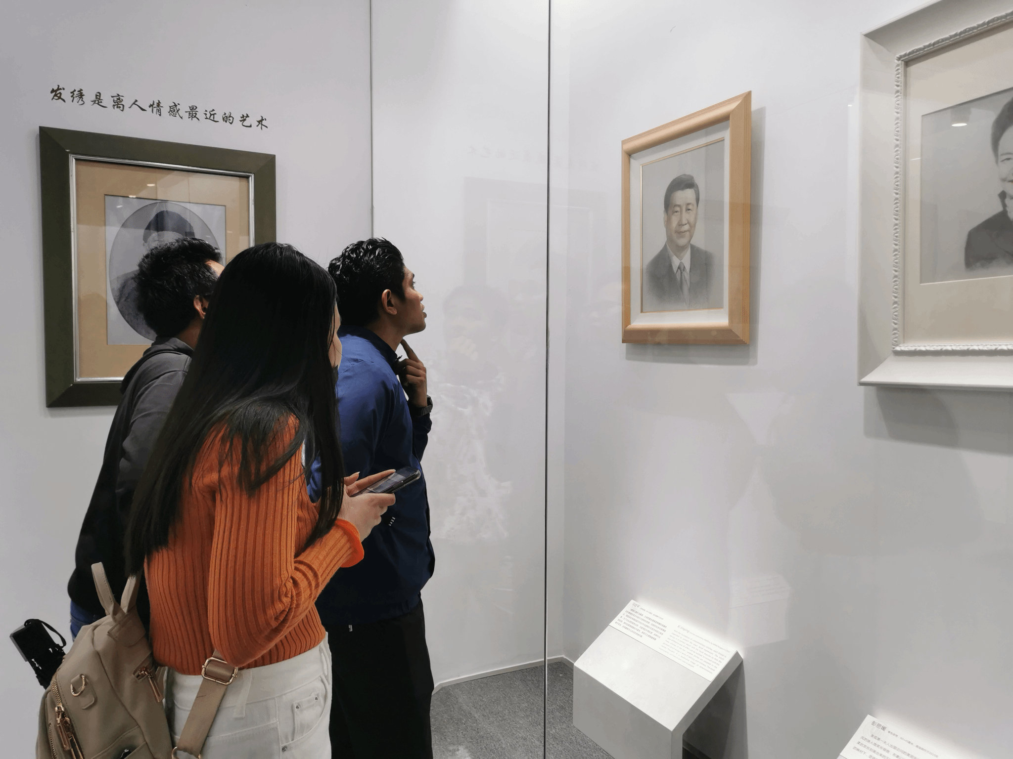 发绣馆,学员们被一幅幅精美的发绣作品深深吸引。发绣是中国传统手工艺之一,以人的发丝为材料,通过细腻的针法和丰富的色彩,创作出栩栩如生的艺术佳作。讲解员详细介绍了发绣的历史渊源、制作工艺和艺术特点,让学员们深刻感受到了这一非物质文化遗产的独特魅力。