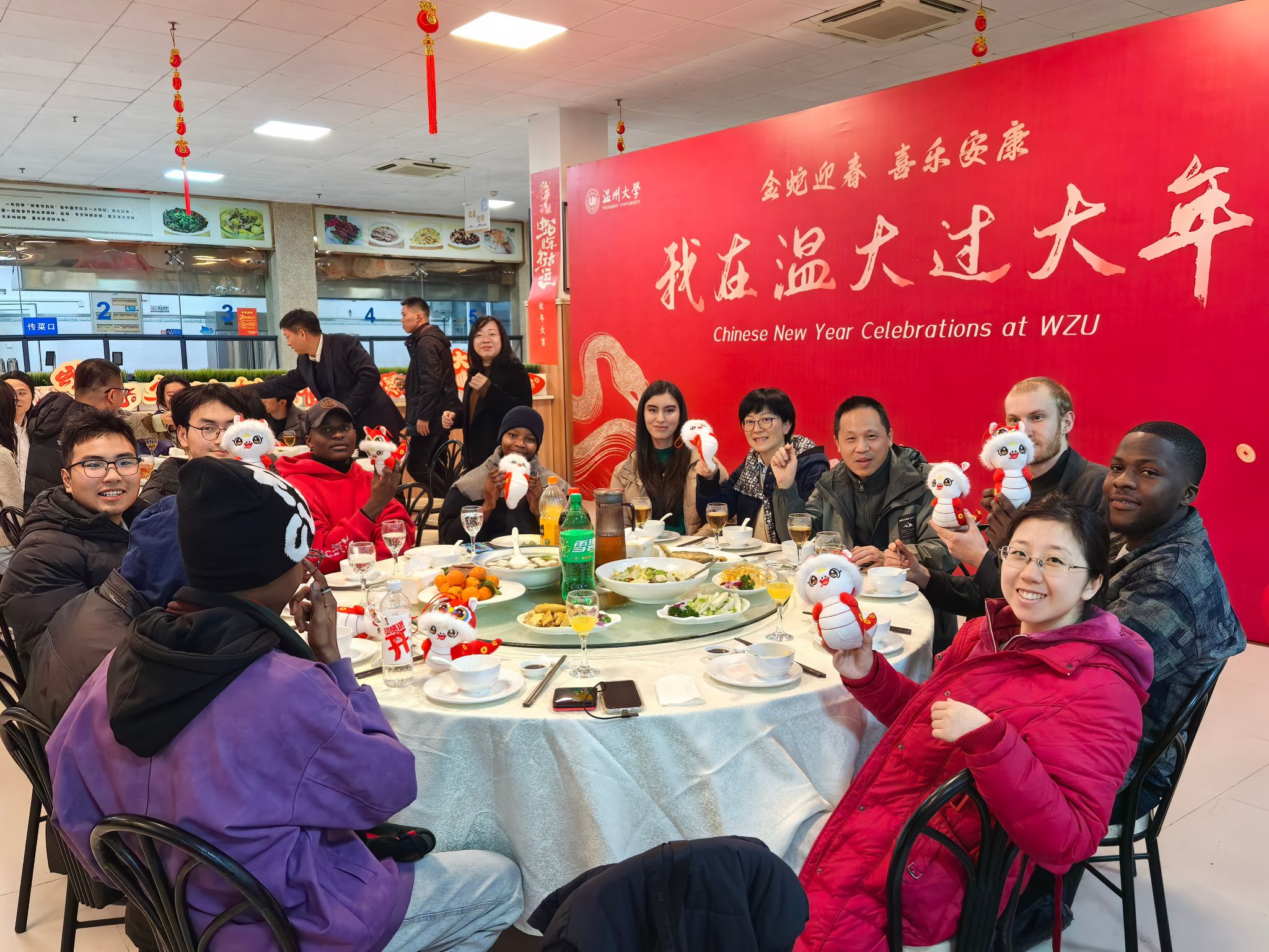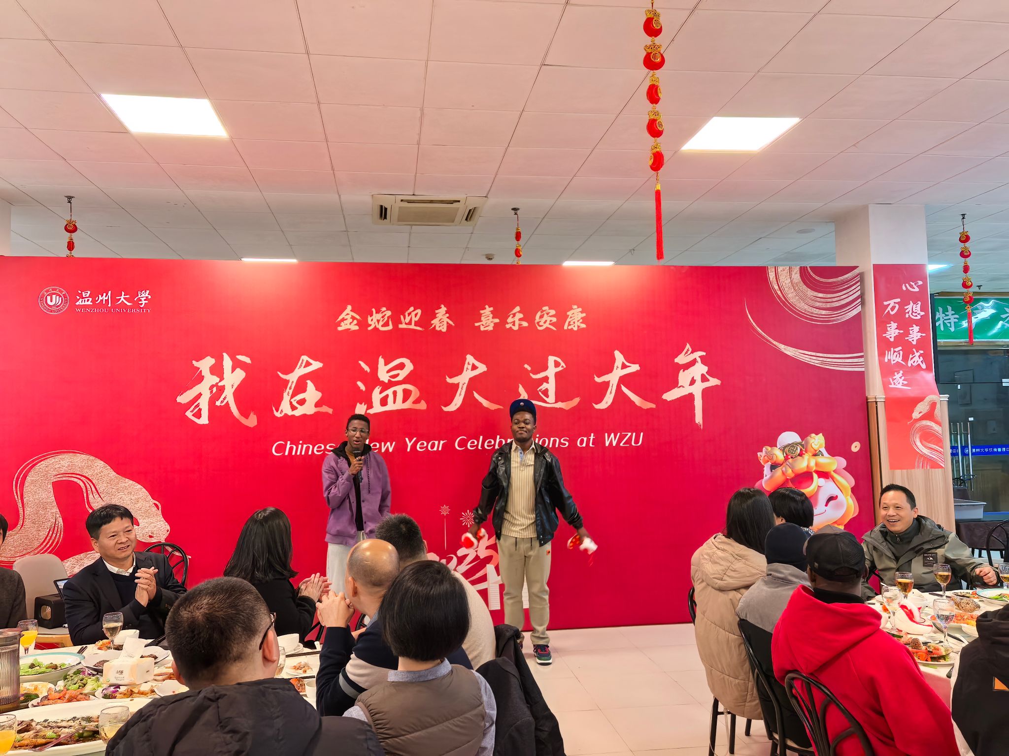 党总支书记林爱菊、副书记丁强与留校师生欢聚一堂,共同迎接新春佳节的到来。留学生们在品尝美味的同时,也感受到了来自学校的温暖与关怀。副校长王舜与留学生亲切交谈,了解他们的学习情况,他希望留学生学好中文,来年再接再厉,学业蒸蒸日上。