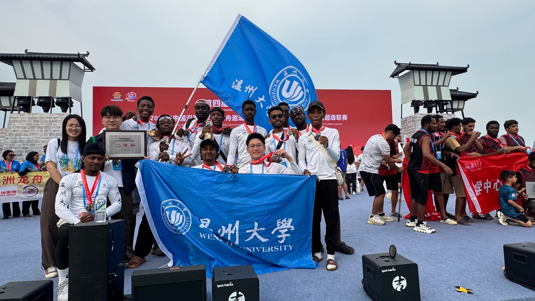 5月24日,我校国际龙舟队应邀赴湖南汨罗参加2025年中国汨罗江国际龙舟邀请赛暨“屈原酒”杯第二届龙舟超级联赛。来自越南、孟加拉、摩洛哥、尼日利亚、利比里亚、赞比亚、津巴布韦、索马里等国的留学生代表校国际龙舟队与日本、韩国、新西兰、同济大学、北京理工大学、中南大学等12支国际组龙舟队展开激烈角逐,他们以昂扬的斗志和非凡的团结精神勇夺国际组二等奖、高校组第二名的好成绩。