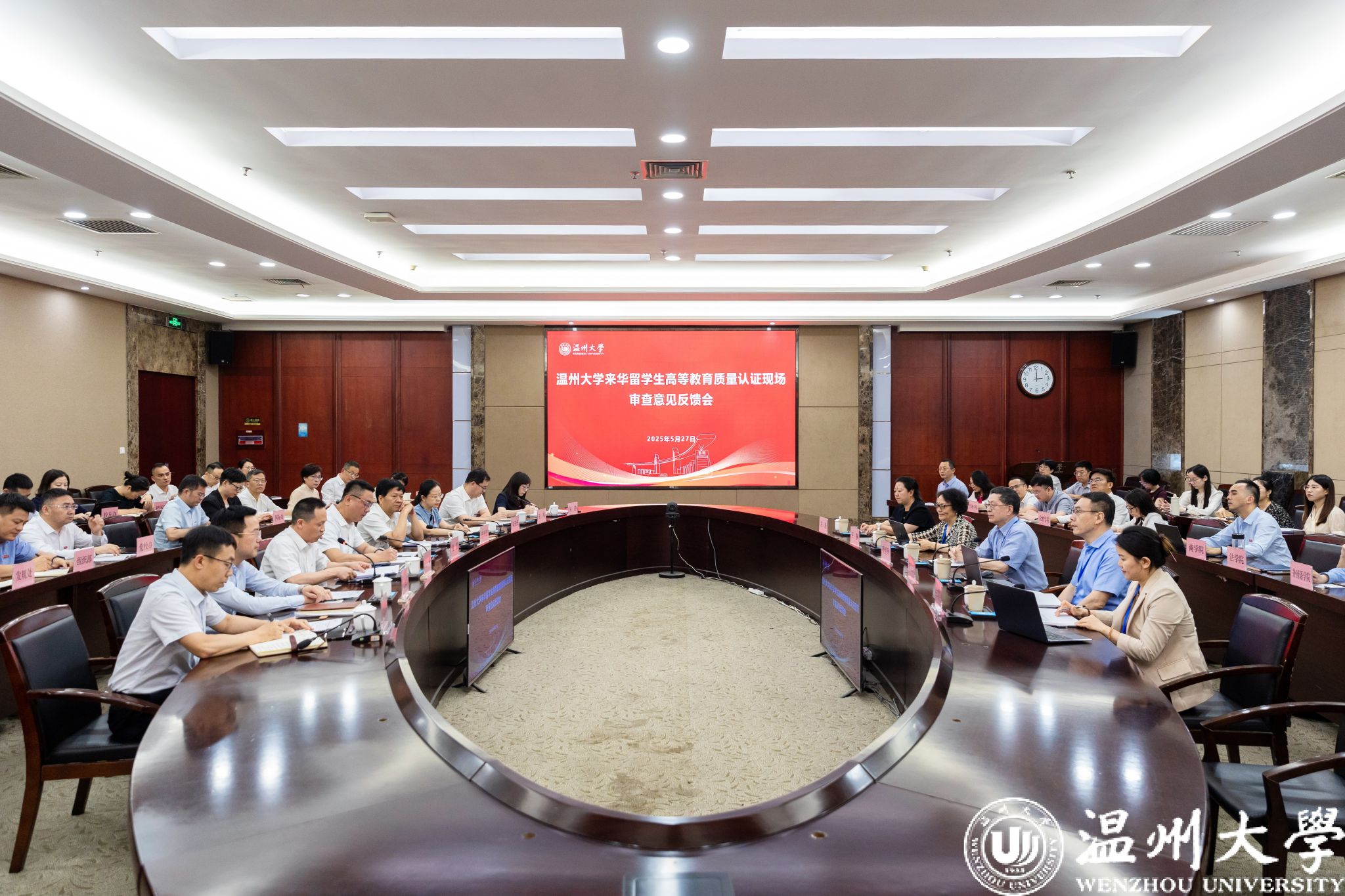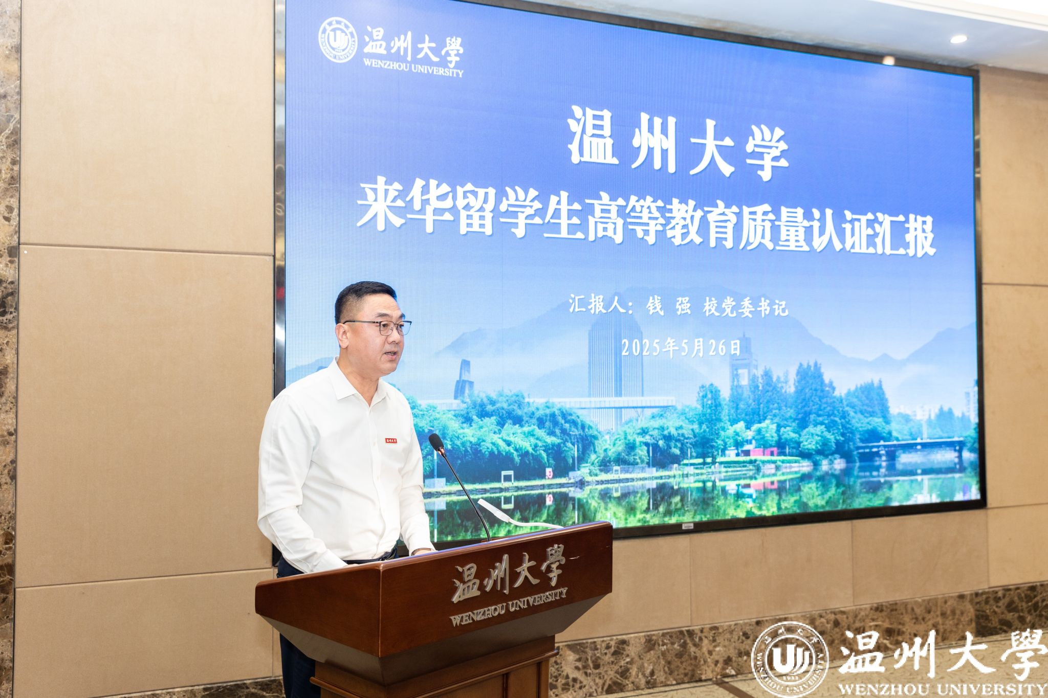 钱强代表学校作表态发言。他表示,学校将切实做好后续整改工作,逐条分析专家提出的意见建议,落实整改任务,着力打造“留学温大”品牌,全面提升学校来华留学办学水平。