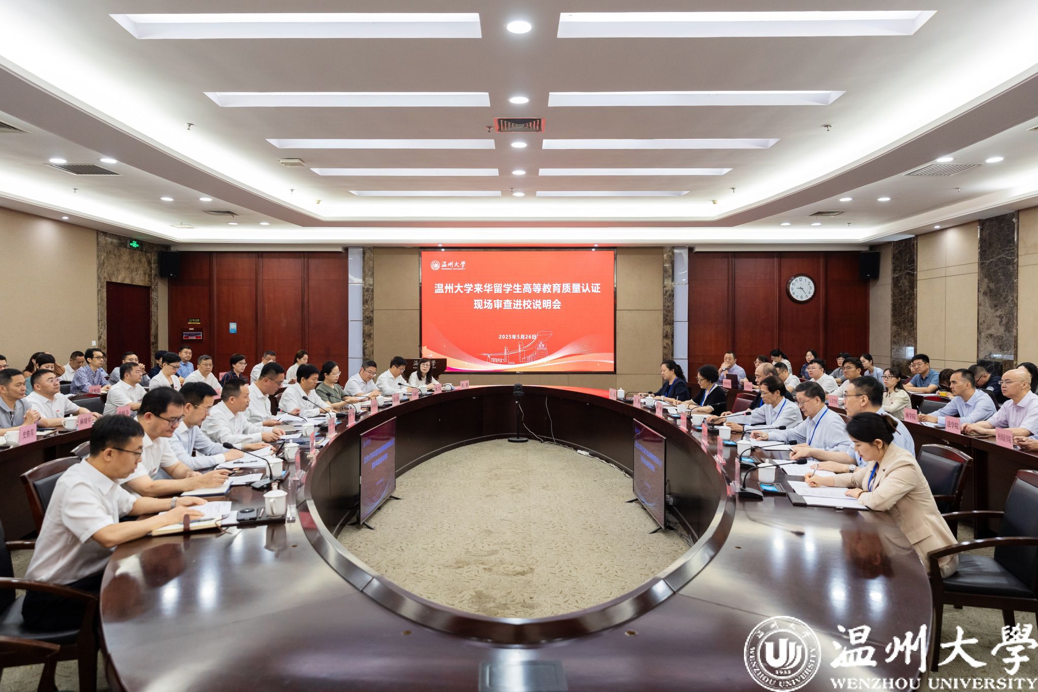 5月26日至27日,中国教育国际交流协会(以下简称“交流协会”)对我校开展来华留学生高等教育质量认证现场审查。教育部督导局原副局长、认证工作委员会副主任林仕梁,浙江省教育厅国际合作与交流处一级调研员杜健,认证专家组组长程爱民,组员张晓涛、王静、兰雪萍,交流协会跨境教育质量保障部高级项目主管王凡到校,开展来华留学生高等教育质量认证(初次认证)现场审查。