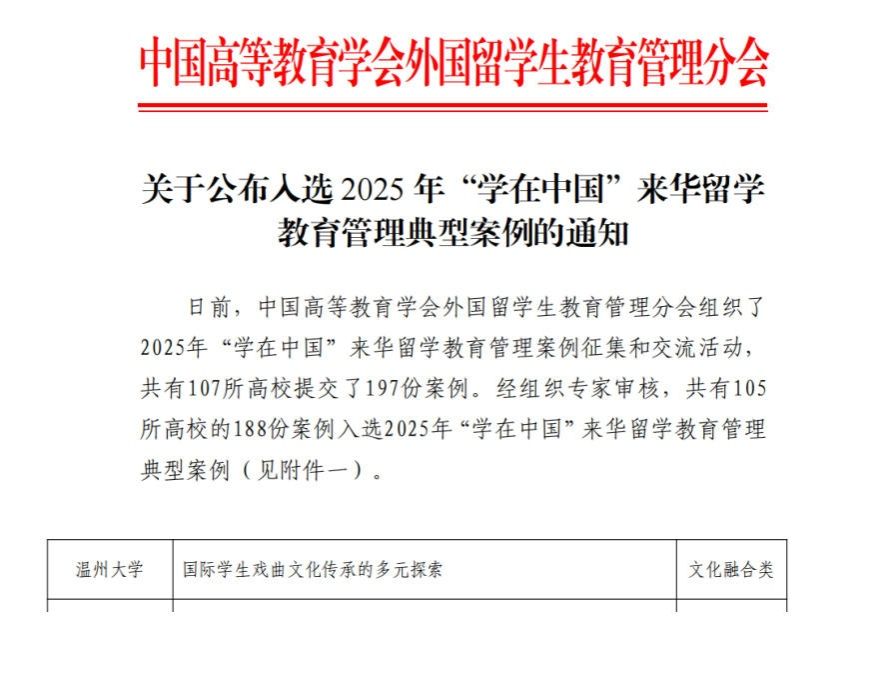 近日,中国高等教育学会外国留学生教育管理分会公布 2025 年“学在中国”典型案例名单,我校海角视频