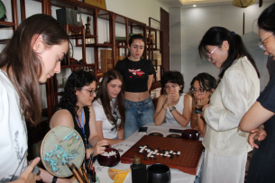 瑞安市东源村的木活字印刷术距今已有八百多年的历史,被称为中国印刷术的活化石。在印刷展示馆,跟随着讲解员的讲解演示,蘸墨、铺纸、拓印,揭纸,学生们动手体验了雕版印刷的全过程。在木活字研学馆,非遗传承人现场雕刻,帮所有留学生挑选出他们的汉语姓名,结合一幅幅雕版图案,一个个带有各自姓名的祝福帖就被印刷出来了。“原来在古腾堡印刷术之前,中国早就有了这样精密的印刷技术!”本次研学活动,让留学生们亲手触摸到中国古代工匠的智慧,更理解了“文明因交流而互鉴”的深意。