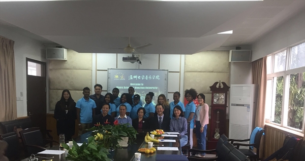 院长兼书记叶苗,音乐学院党总支书记方建敏、副院长王文韬,国教院副书记陈文远、副院长熊勇及留学生代表等参加了此次活动。