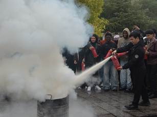 (留学生教育与管理部)面向全体国际学生举办安全教育专题活动,并联合学校保卫处开展沉浸式消防安全演练。