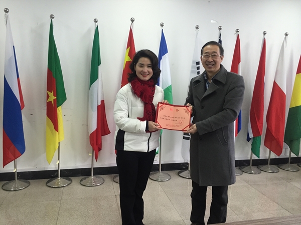 国际合作学院客座教授,学院院长严晓鹏博士向曾春玲老师颁发了证书。