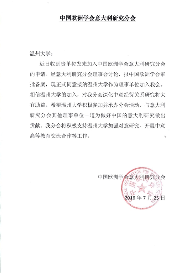 作为理事单位正式加入中国欧洲学会意大利研究分会,未来将积极参与意大利研究分会的研究交流工作。