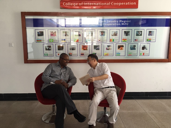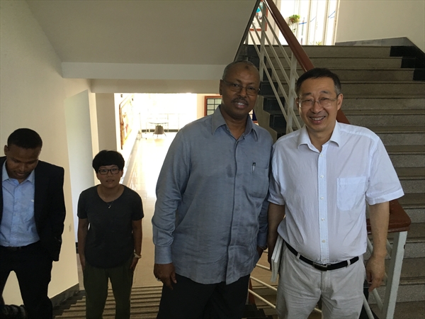 国际化进程的脚步,2016年7月20日吉布提共和国驻华大使Abdallah Abdillahi Miguil及工作人员一行2人在学校外事处交流科科长熊勇的带领下,来到国际合作学院参观访问。院长严晓鹏和办公室副主任廖一帆热情接待了大使一行人。
