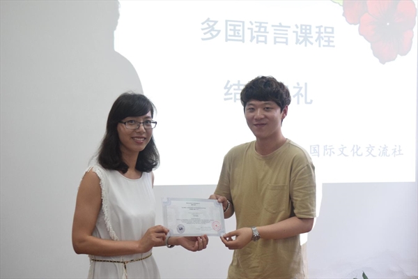 本学期多国语言课程共开设英语、德语、韩语、日语、西班牙语、法语等六种语言。十多周的课程已经结束了,参与课程的学校老师和学生们的外语水平都有了显著提高,其中33位学生经考核,表现优异,授予结业证书予以鼓励。此次的结业典礼,在鼓励大家学习优异表现的同时,也表达了对授课老师的感谢。其间海角视频