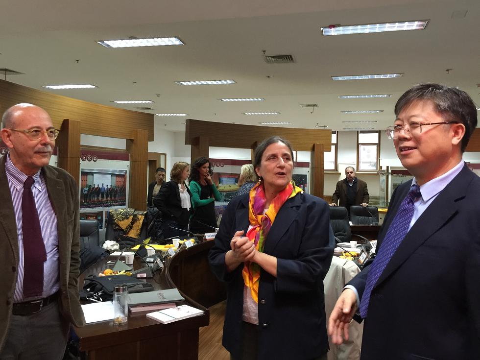 11月4日下午,李校堃校长会见了意大利华文教育考察团,该考察团由意大利托斯卡纳大区政府官员、意大利西耶纳大学、米兰天主教大学教授、COSPE(支持发展中国家协会)组织成员以及多所佛罗伦萨高中校长组成,省外侨办文宣处处长王云奇、温州市外侨办副主任许捷等陪同前来。