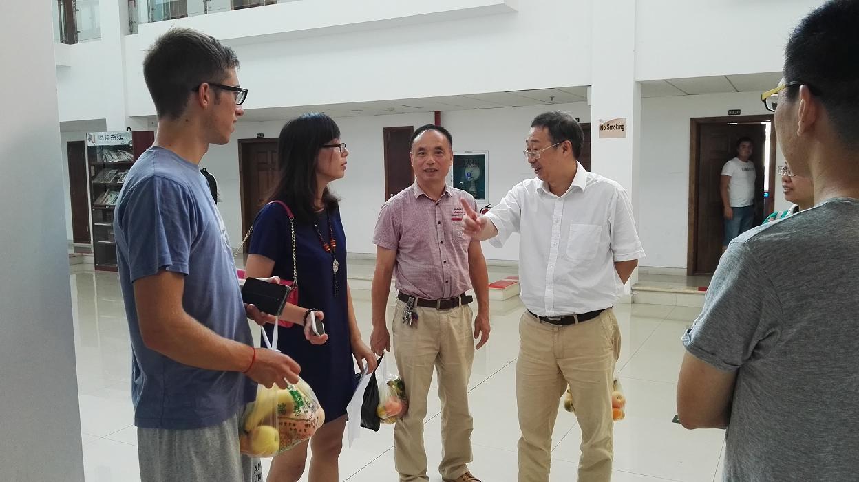 9月10日下午两点半,国际合作学院院长严晓鹏、党总支书记朱建平、副院长包含丽偕同学生科、教学科、教研室相关老师,走访专家楼看望慰问来自韩国、印度尼西亚、意大利、泰国等多个国家的2015级留学生新生。