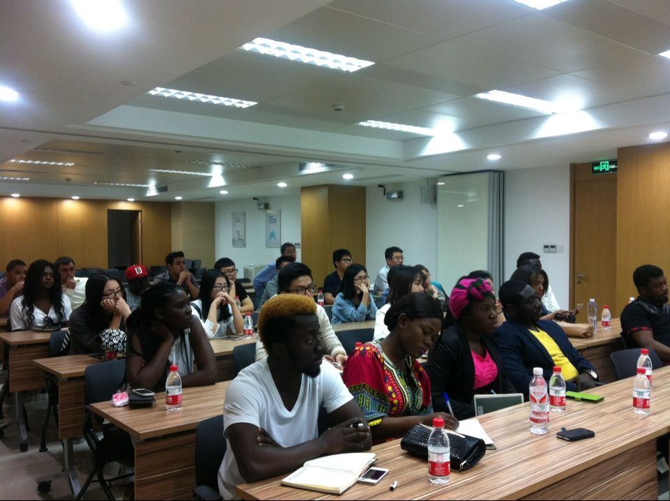 学生抵达上海自贸区后,首先聆听了由自贸区管理委员会外事接待办主任孙女士主讲的“Benchmarking International Practice, Pushing Forward SHFTZ Development”(《对照国际通行做法,推动上海自贸区发展》)讲座。通过讲座,学生们了解了上海自贸区的组成区域及其功能,自贸区开展的金融、海关、政府监管等方面的创新实践和取得的成效,并就自己感兴趣的话题向孙女士请教。来自加纳的学生ADUSEI EUNICE和OSEI NAOMI就在自贸区如何注册贸易公司进行了咨询;来自约旦的LAITH ABDEL HAFEZ YOUSEF ALSMADY询问了“negative list”(自由贸易试验区外商投资准入特别管理措施(负面清单))的具体规定。很多外国学生表示,他们的一些朋友在中国做生意,遇到很多难题,想不到在自贸区注册一个公司这么容易,可以考虑让朋友到自贸区办公司。
