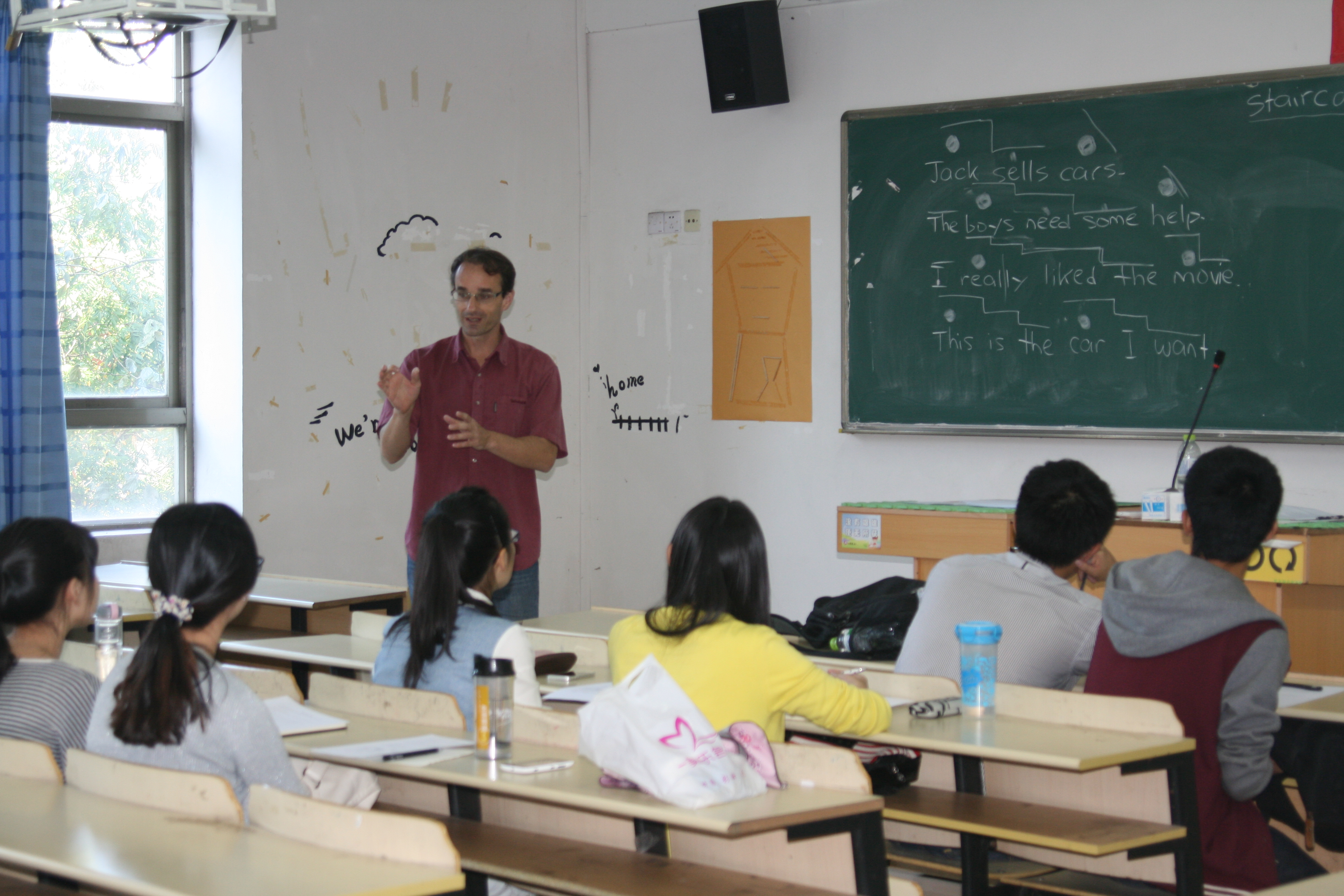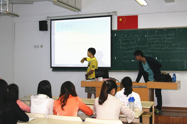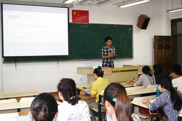 来自世界各地的留学生,他们发挥自身语言优势,以轻松生动的上课方式带动整个课堂。在传授语言知识的同时,融合各国传统文化背景,使中国学生在真实的语言环境下感受外语魅力,激发学习兴趣。同时,以课堂为载体,留学生与中国学生之间也加强了彼此的交流和沟通,从而加深了学友间的情谊。