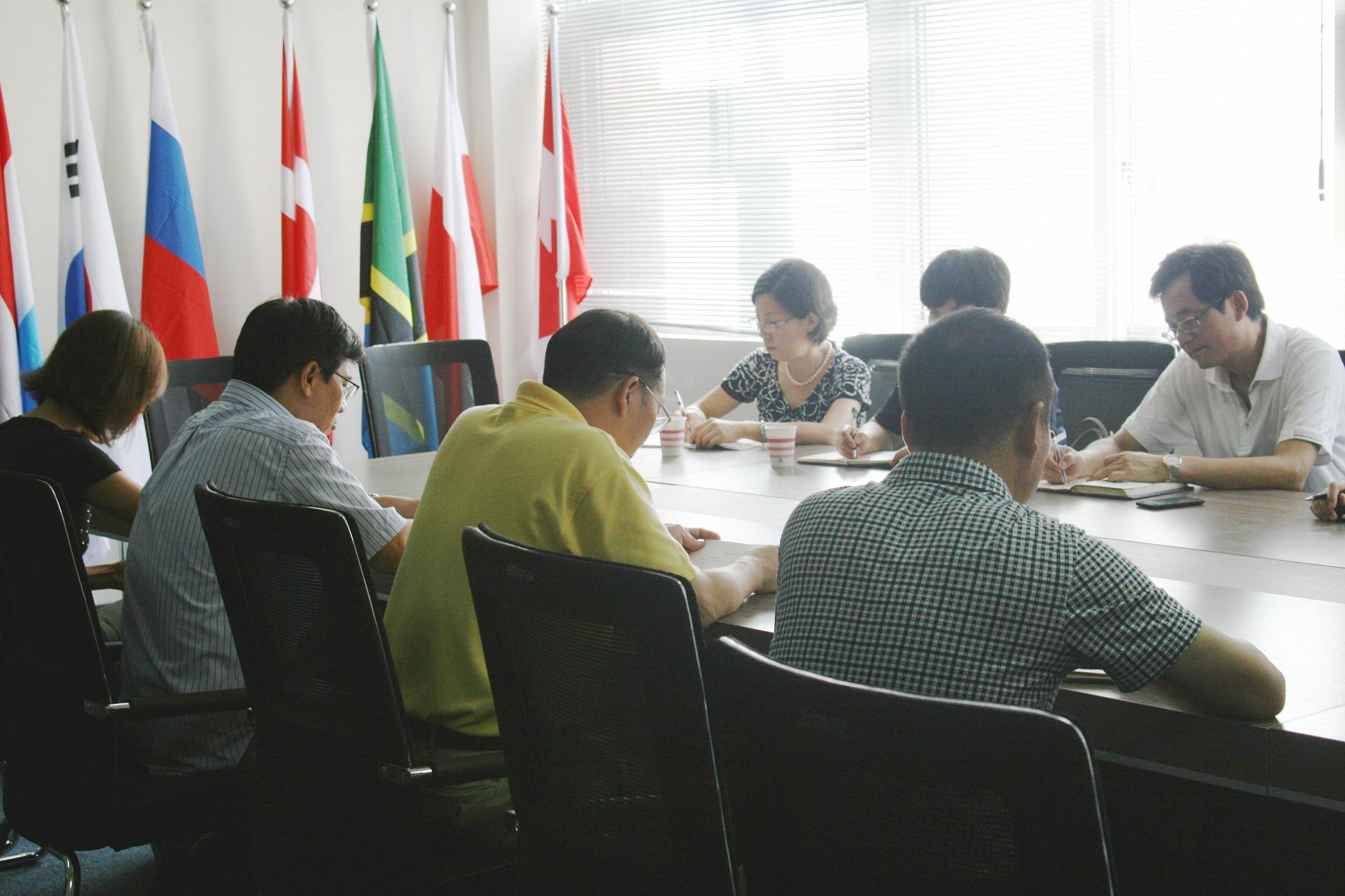 严晓鹏院长汇报了学院的发展历程,近年来取得的标志性成果,当前学院的运行状况:中丹合作办学项目、两岸合作办学项目以及留学生教育的教学模式以及财务状况等,分析了处于创业发展阶段中学院面临的机遇和挑战,特别提出了在当前学院的运行体制不确定的情况下,学院在人才引进、师资队伍建设、教学工作安排、教改科研等各方面存在一定的困难。朱建平书记也就海角视频