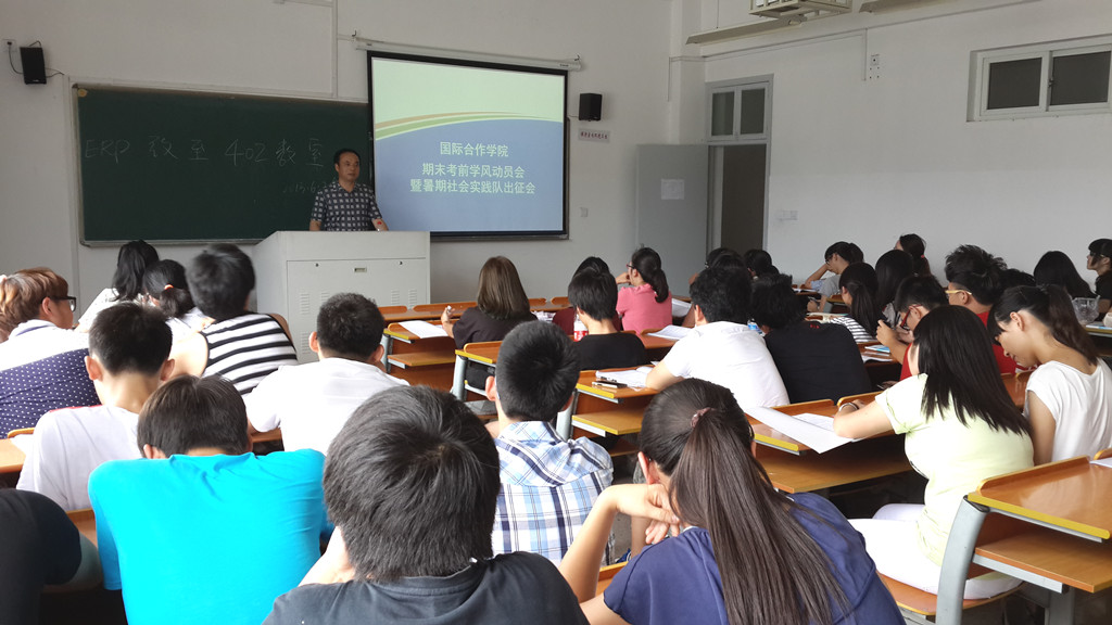 4支暑期社会实践队伍的行程、注意事项、学分申请材料以及实践结束后的总结事项等给大家做了详细介绍。朱建平书记结合以往的考风考纪案例,向同学们强调了四点要求:一是从思想上高度重视,积极迎考;二是充分准备,合理安排复习时间,提高学习效率;三是诚信应考,严格遵守考场纪律,杜绝一切考试作弊行为;四是在复习期间要注意劳逸结合,保证身体健康,在期末考试中发挥正常水平。此外,他还向同学们强调参加社会实践的重要意义和安全工作等。