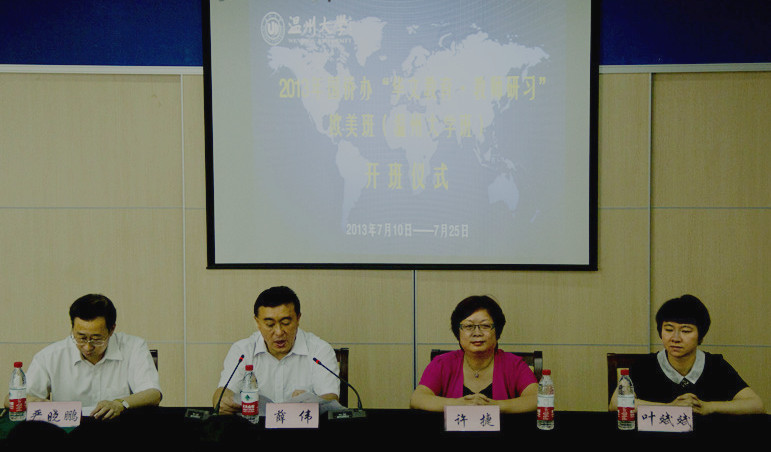 为本次培训所做的大量卓有成效的工作,表示学员们将珍惜这次的机会,以认真的态度上好每一堂课,努力提高教学技能和教学素质,为欧美华教事业的发展做贡献。温州市侨办副主任许捷做总结讲话。她向各位学员介绍了温州概况,希望各位学员在温培训期间多走走、多看看,并预祝本次研习班取得圆满成功。开班仪式上,严晓鹏院长还宣读了浙江省侨办发来的贺信。