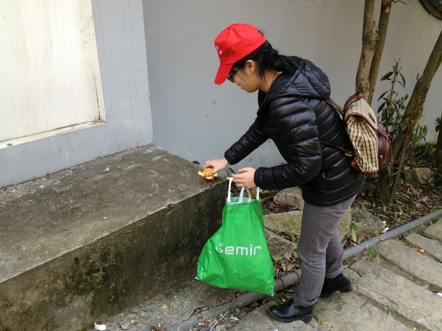 中丹合作项目2011级市场营销专业的10名志愿者前往大罗山开展捡垃圾的志愿活动。志愿者们早早地来到大罗山脚,此时正值初春,阳光明媚。山上游人如织,摩肩接踵,许多人都来感受春的气息。但是与此不和谐的是,地上随处可见瓜皮果核,塑料袋等各种垃圾。志愿者们分成几组,从山脚下开始拾垃圾。志愿者们不怕脏不怕臭,在强烈的阳光照射下,很快汗流浃背,陡峭的石路也增加了工作的难度,不知不觉中,志愿者们爬到了半山腰,同时也收集了好几大袋垃圾,在活动过程中,许多游人都以赞许的目光示意,在志愿者的身边也再也看不见随处乱丢的现象。志愿者们以自己的实际行动宣传了环保意识。
