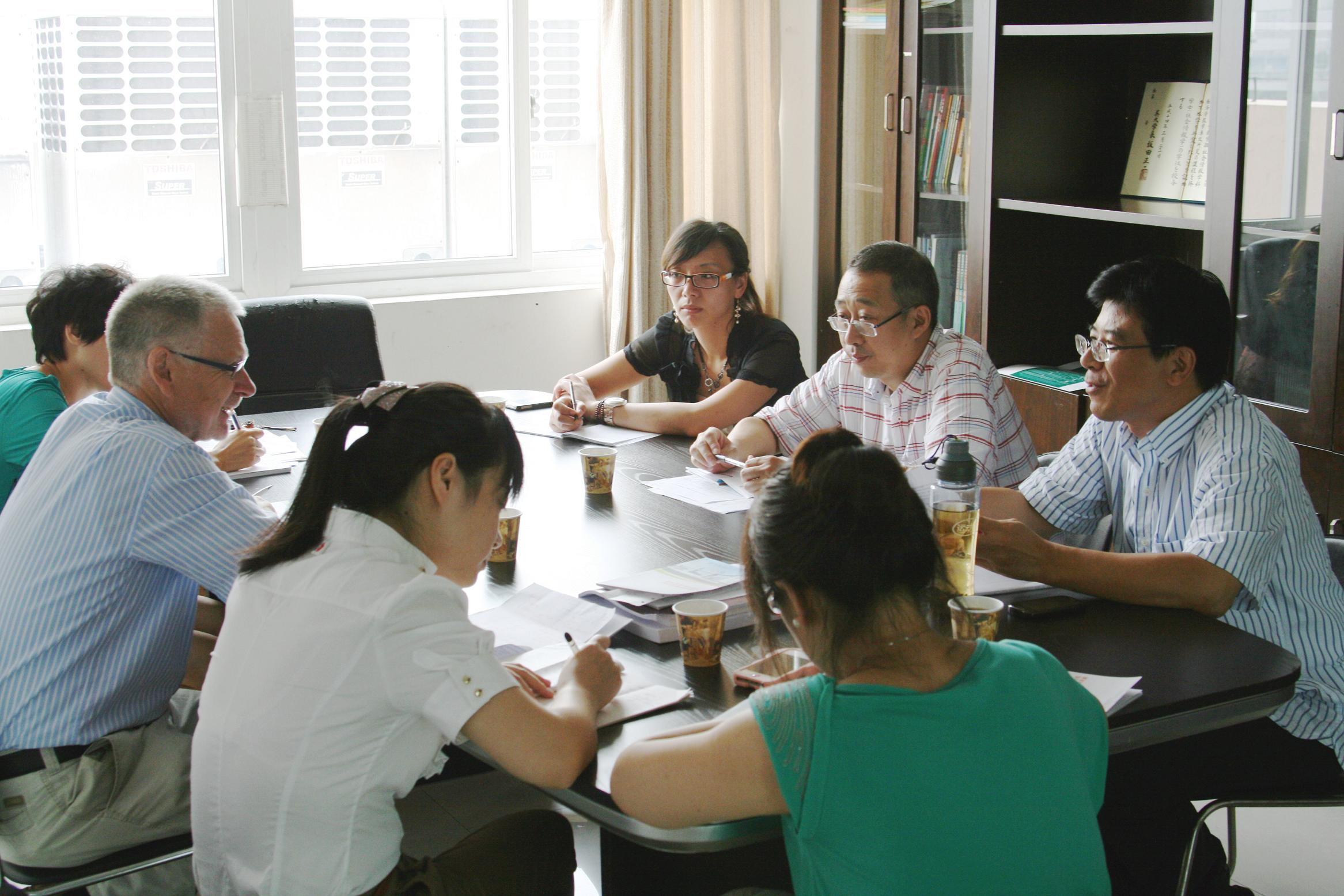 例会上,陈军副院长首先介绍了过去一年中丹合作项目的发展成果以及新学年该项目将面临的机遇和挑战。然后教务科科长张雪萍针对国际化课程建设和评价所需要的相关材料对Jorgen先生做了详细说明。同时,学院国际化课程教研室主任张滢对该项目的课程设置和培养方案提出了宝贵意见。最后严晓鹏院长针对接下来该项目如何长远发展与Jorgen先生进行了热烈讨论。